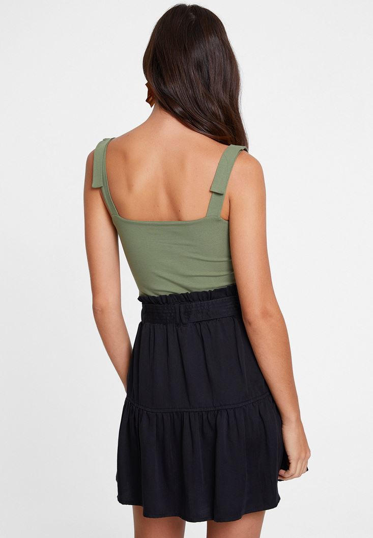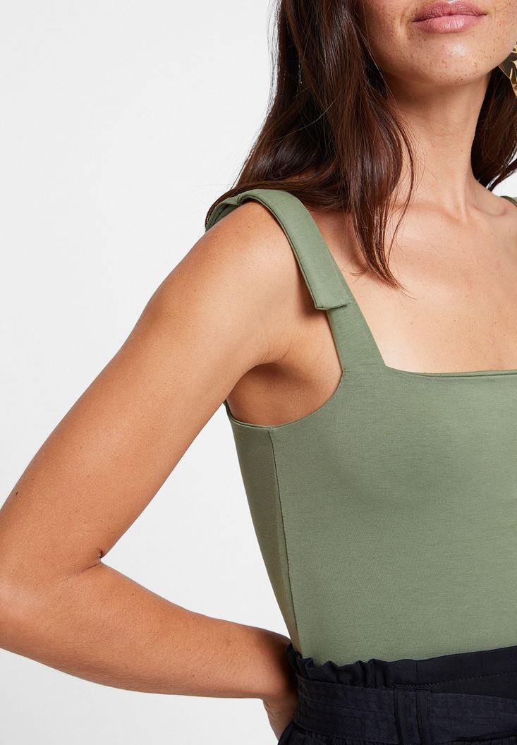 Yeşil Askı Detaylı Kare Yaka Bluz