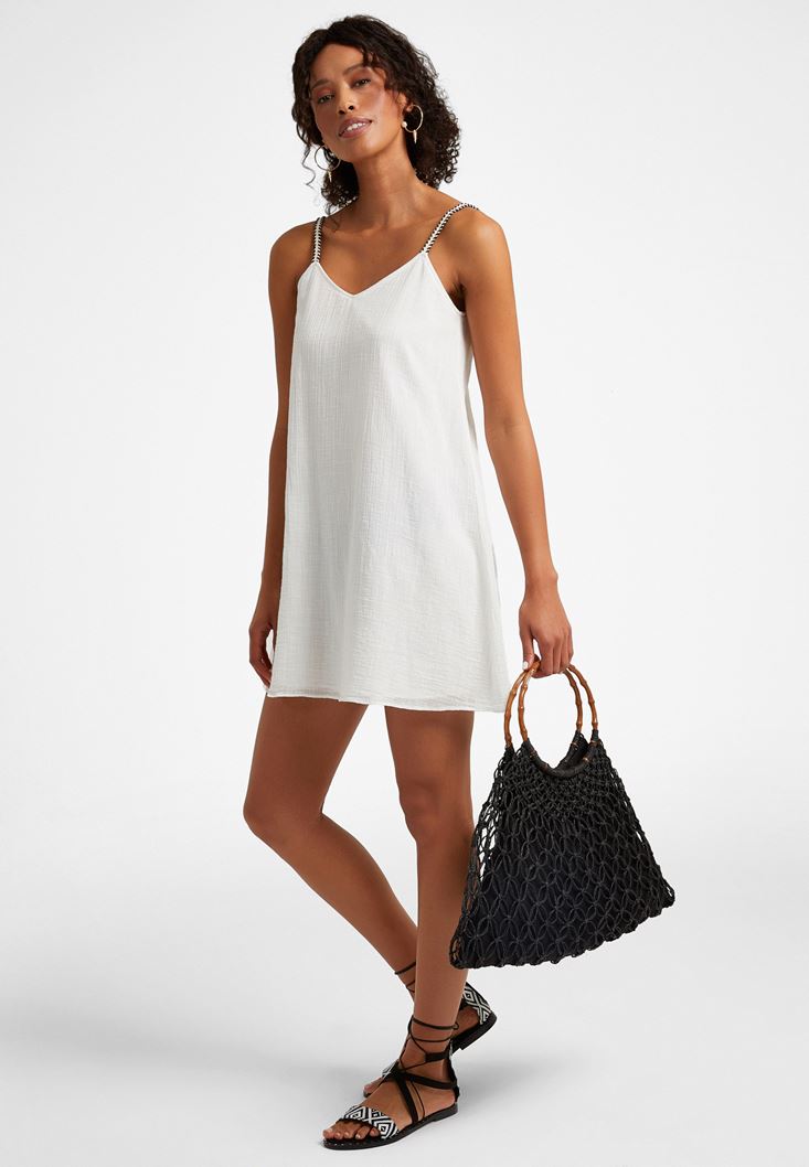 Askı Detaylı Mini Elbise modeli, pamuk içerikli dokusunun yumuşaklığı ile sizlere sunuluyor. kadın elbise modeli, örme detaylı askıları ve arka kısmındaki biyeli V kesimi ile ön plana çıkıyor. Askılı elbise modeli, kısa görünümü ve geniş kalıbı eşliğinde Oxxo'da sizlerle buluşuyor. kadın mini elbise modeli, yeni sezon içerisinde stilinize iddialı görünümler katmanız için ideal bir seçenek oluyor. Askılı elbise modeli ile topuklu ayakkabılar veya sandaletler kullanarak çekici bir bütünlük oluşturabilirsiniz. kadın mini elbise modelini hasır şapkalarla ve çantalarla bir araya getirerek güçlü kombinler yapabilirsiniz. Oxxo'nun doğal dokularla sizlere sunduğu kadın elbise modelleri ile moda dünyasının değişimine ayak uydurabilirsiniz.