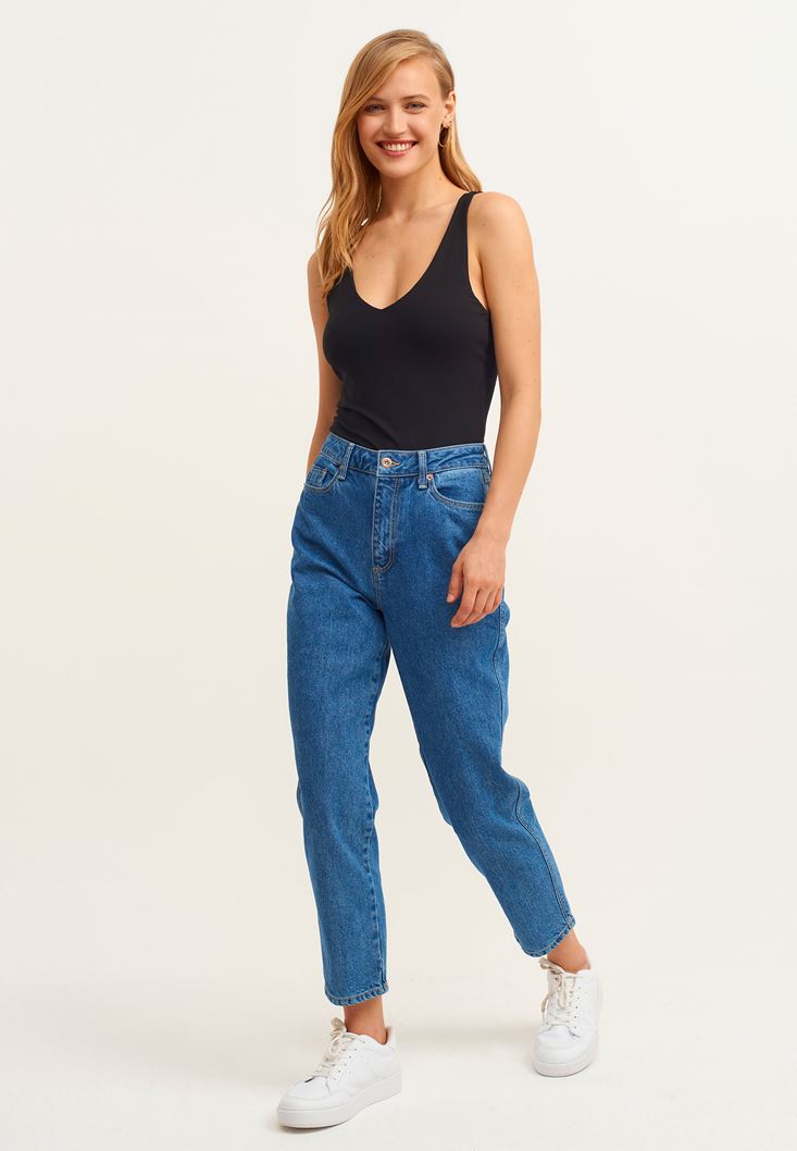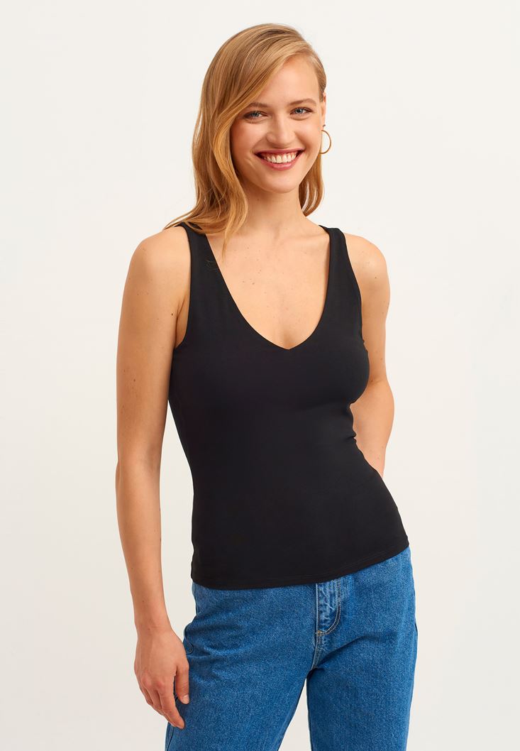 Siyah Askı Detaylı V-Neck Tank Top