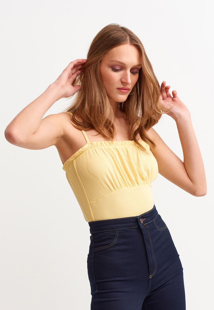 Sarı Askılı Crop Atlet