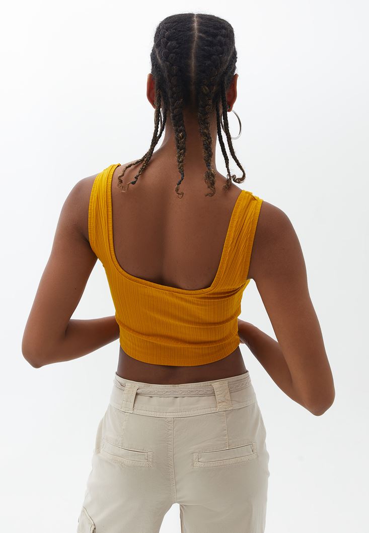 Sarı Askılı Crop Atlet