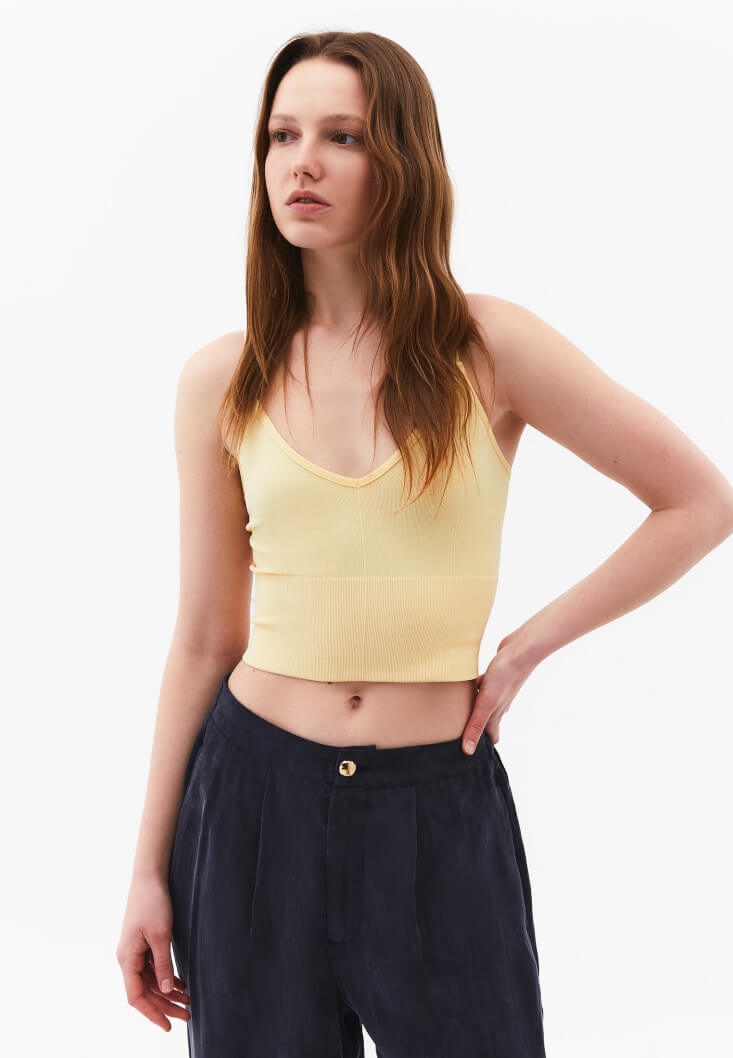 Sarı Askılı Crop Atlet