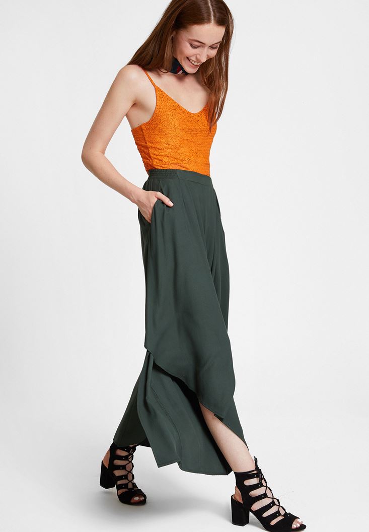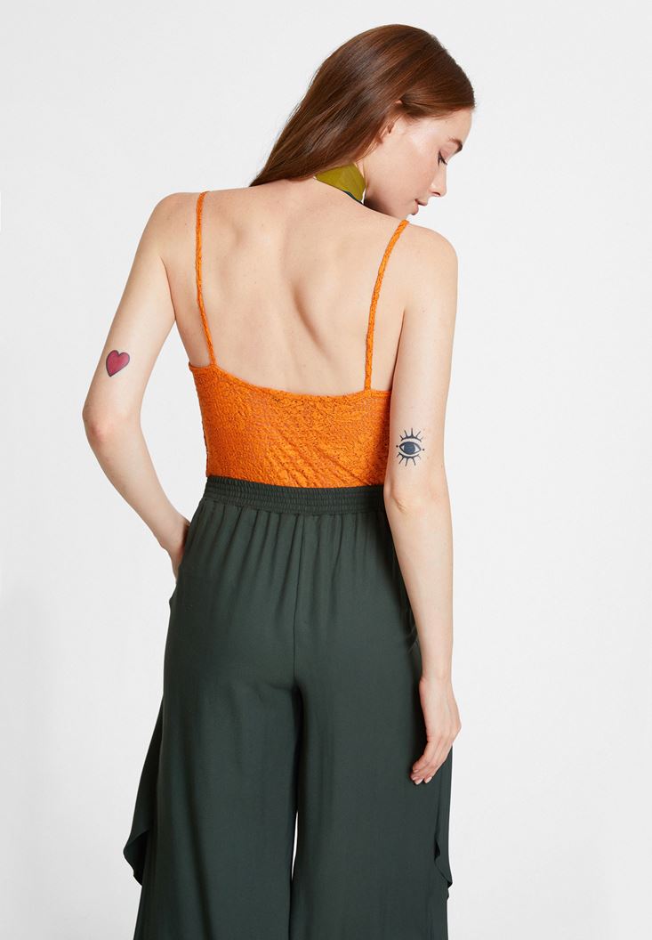 Askılı Dantel Bluz modeli zarafeti ve şıklığı başarılı bir şekilde bir araya getiren tasarımı ile her tarzda kombinde rahatlıkla kullanabileceğiniz bluz modelleri arasında yer alıyor. Tasarımın sahip olduğu U yaka kesim ve bu kesimi ön plana çıkaran astar detay oldukça hoş bir görünüm sunuyor. Göbek hizasına kadar devam eden astar detayı ile dantel görünümünün de ön plana çıktığı bluz modelinin sırt kısmı ise tamamen dantelden oluşuyor. İnce askıları ve askılarda da tercih edilen dantel kullanımı ile tasarım bütünlüğünü başarılı bir şekilde sunan bluz modeli günlük, spor ya da klasik tarzda kombinlerde tercih edebileceğiniz kurtarıcı OXXO tasarımlarından birisi olacak.
