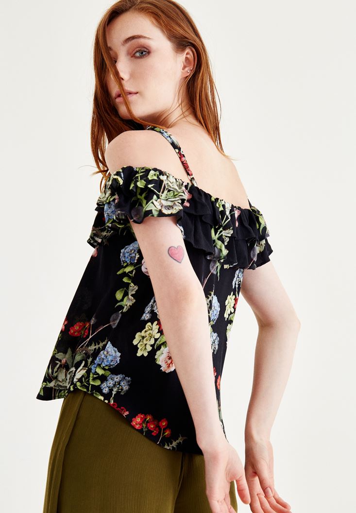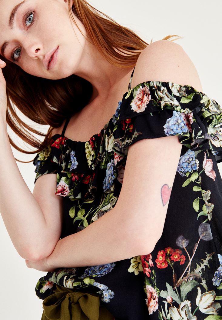 Firfirlar son dönemin öne çikan detaylari arasinda yer aliyor. Yaz aylarinda sizi bogmayacak ve içinde rahat edeceginiz kiyafetler birçok detayin önüne geçiyor, Düsük omuzlu OXXO bluzumuz renkli desenleri ile civil civil bir görüntüye sahip olmanizi saglayacak. Desenli kiyafetler giymek sizin farkinda olmadan enerjinizi yükseltecek, kombinlenmesi kolay olacagi için de sizi birçok dertten kurtaracaktir. Bluzu öne çikartmak için düz parçalar tercih edebilir, sik bir kombin yapabilirsiniz. Daha rahat bir kombinden yana olanlar bu bluzu bol pantolonlar ile kombinleyebilir günlük ve içinde rahat edebileceginiz bir siklik olusturabilirsiniz. Düsük omuzlarinin yaninda aski detaylari size rahatlik sunacak ve bluzunuzun kayma derdini ortadan kaldiracak.