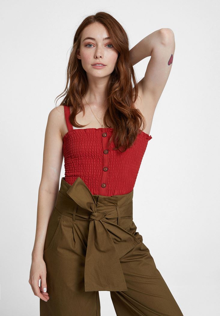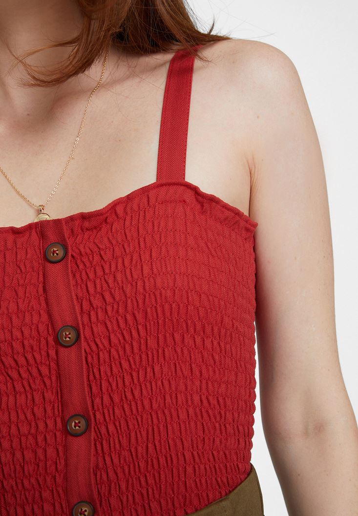 • Bayan Kırmızı Askılı Gipeli Bluz