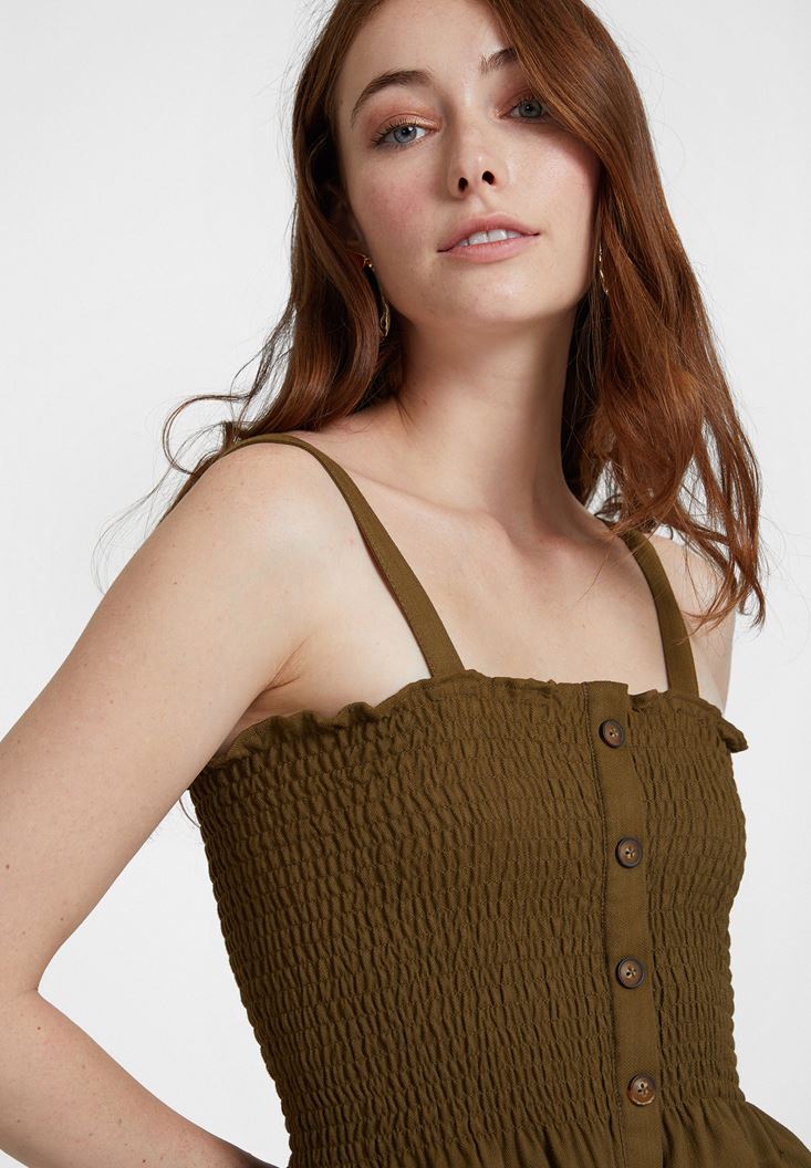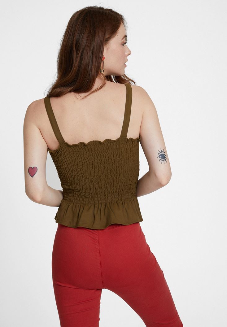 Yeşil Askılı Gipeli Bluz