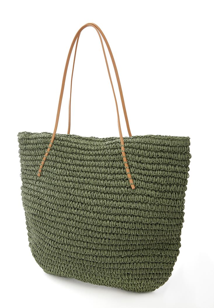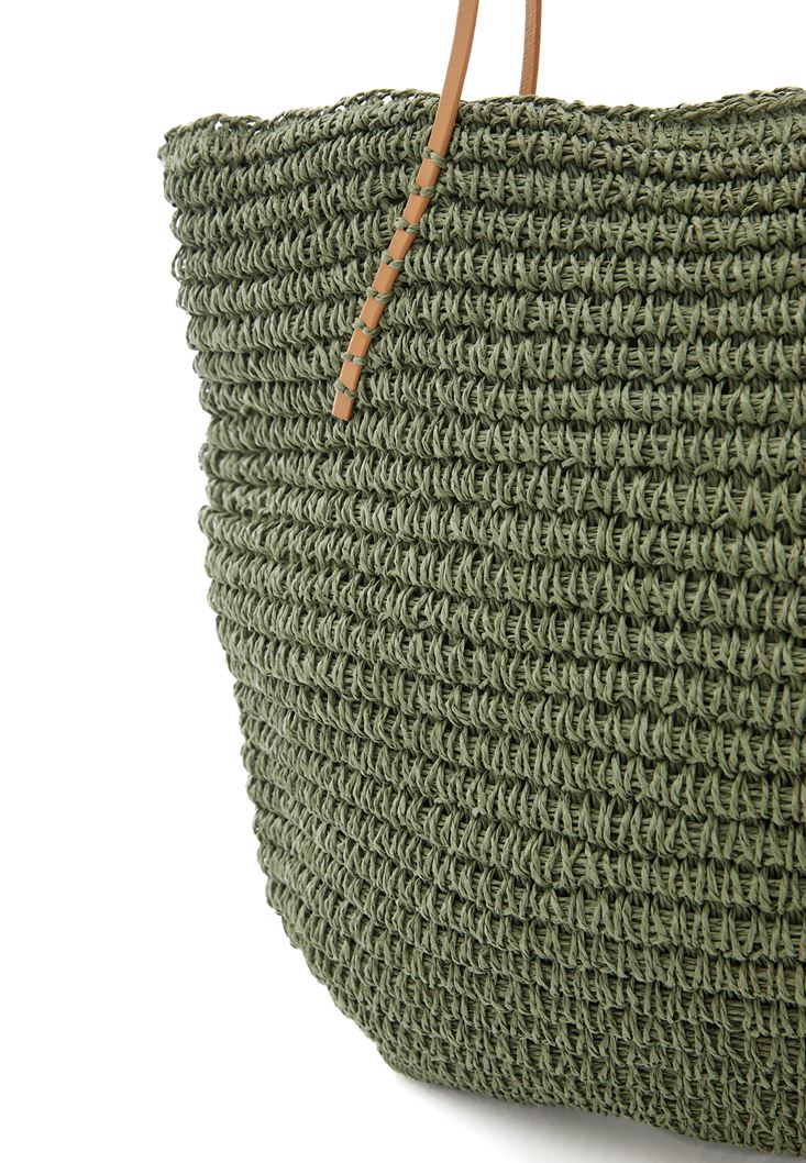 Yeşil Askılı Hasır Çanta