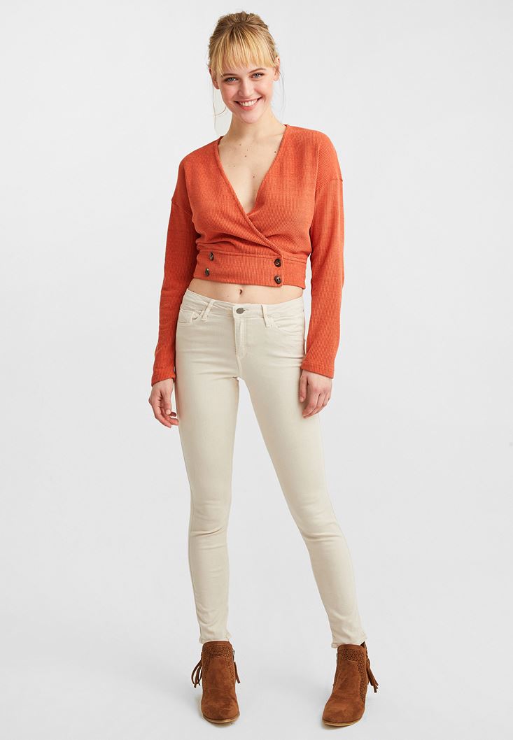 Dar Paça Pantolon ve Kruvaze Bluz Kombini