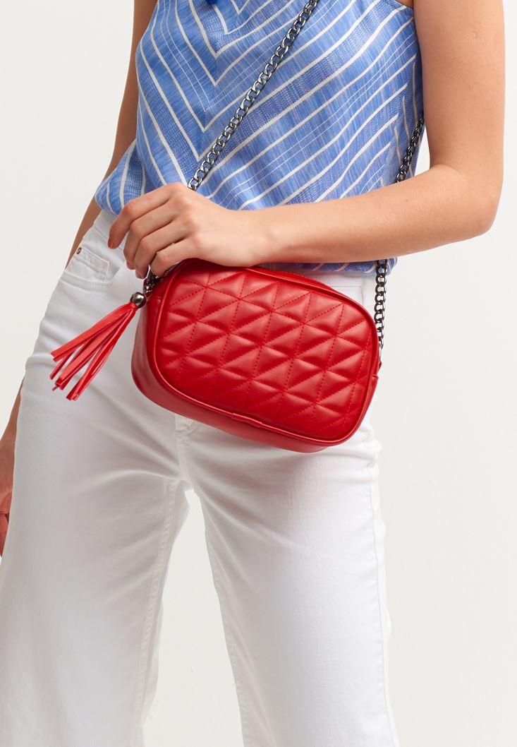 Askılı Kol Çantası modeli, yumuşacık deri dokusu ve püskül detayı eşliğinde kolaylıkla şıklığı yakalamanız için sizlerle buluşuyor. Kol çantası modeli, zincir askılı yapısı ve nakışlı dokusu ile tarzınıza dahil etmeniz gereken parçalardan biri oluyor. Günlük hayatınızda veya özel gecelerde kullanabileceğiniz askılı çanta modeli ile uzun elbiseleri ve crop ceketleri bir araya getirebilirsiniz. Kol çantası modeli ile eşsiz bir ahenk yakalamak için deri dokulu topuklu ayakkabılar tercih edebilirsiniz. Oxxo'nun her sezon çok sevilen detaylarla sizlere sunduğu askılı çanta modelleri ile tarzınızı dilediğiniz gibi şekillendirebilirsiniz.