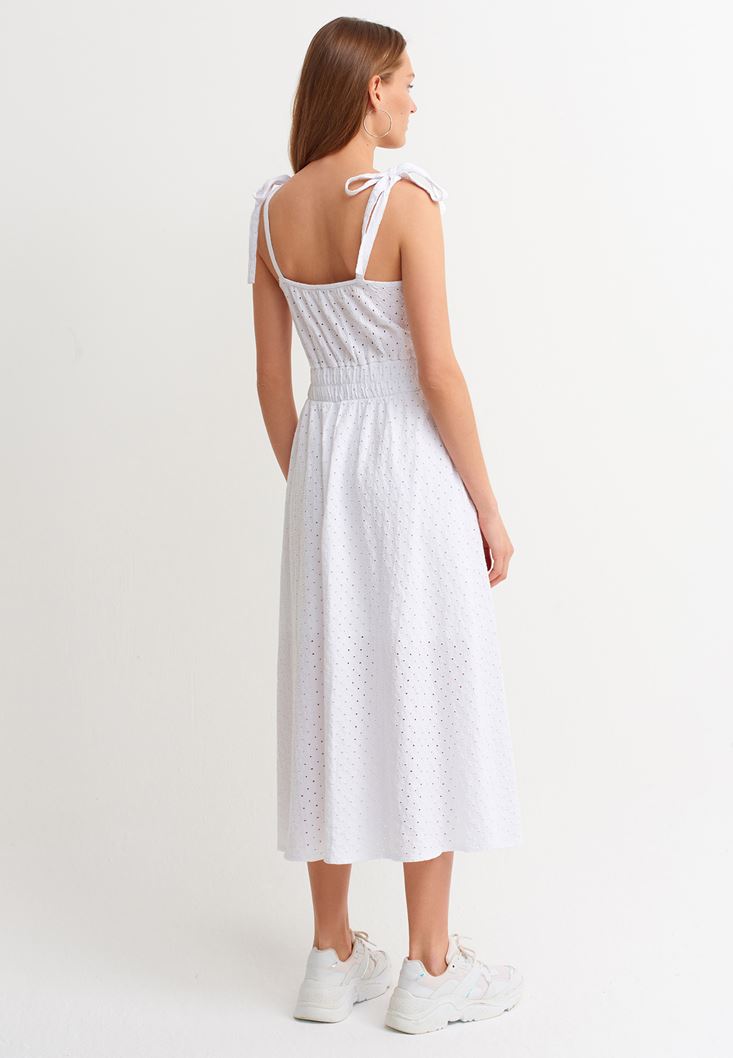 • Bayan Beyaz Askılı Midi Boy Elbise