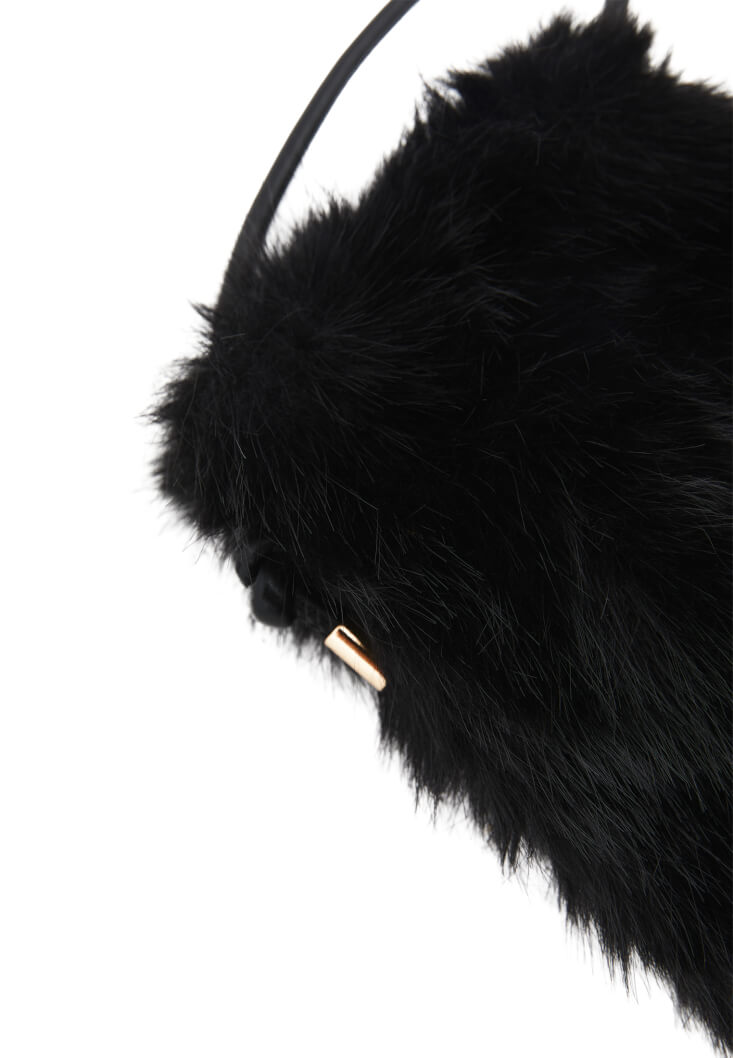 Siyah Askılı Peluş Çanta