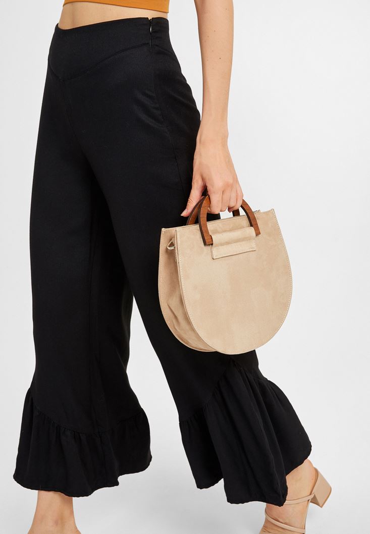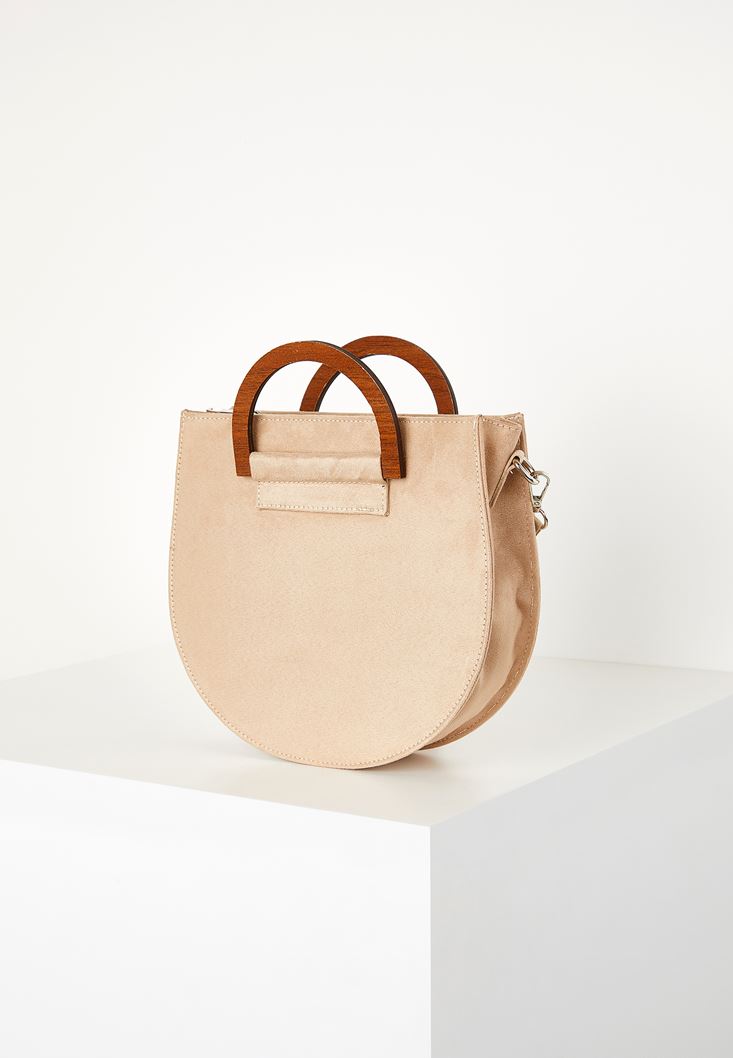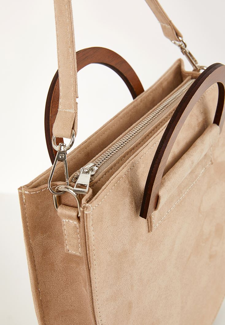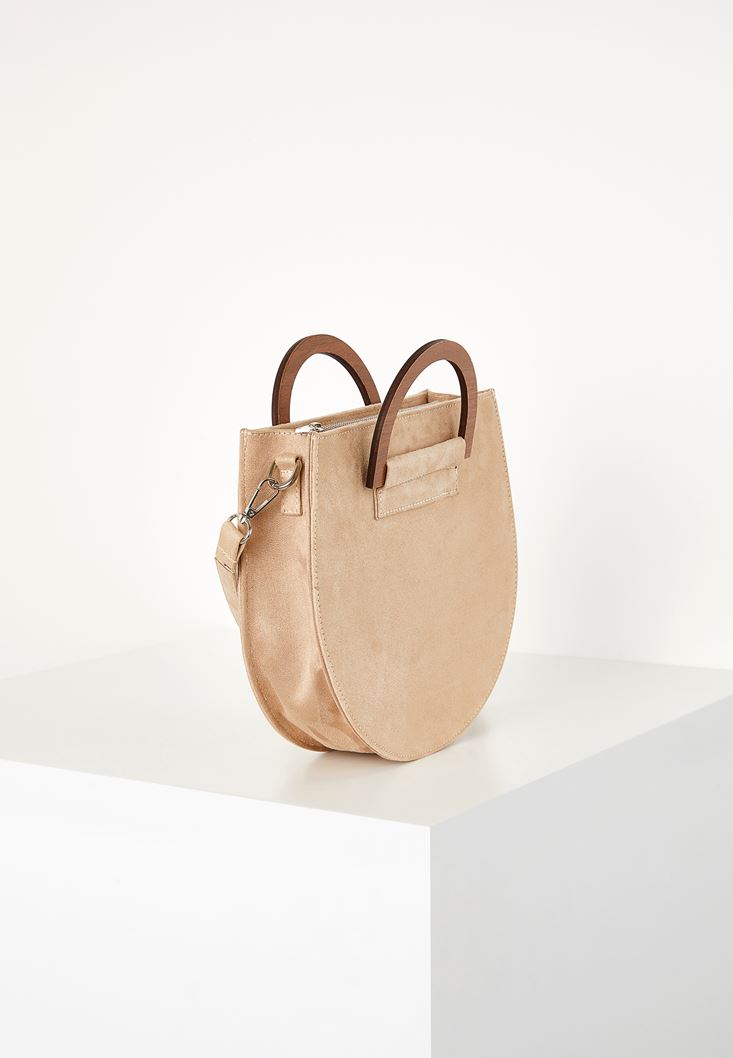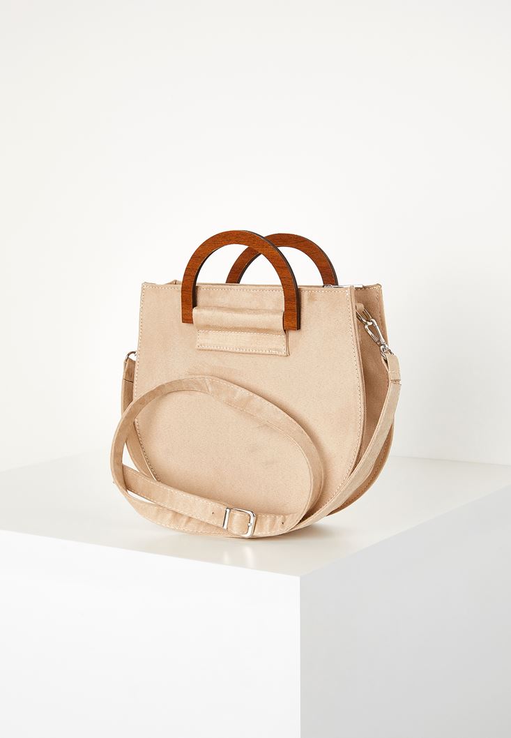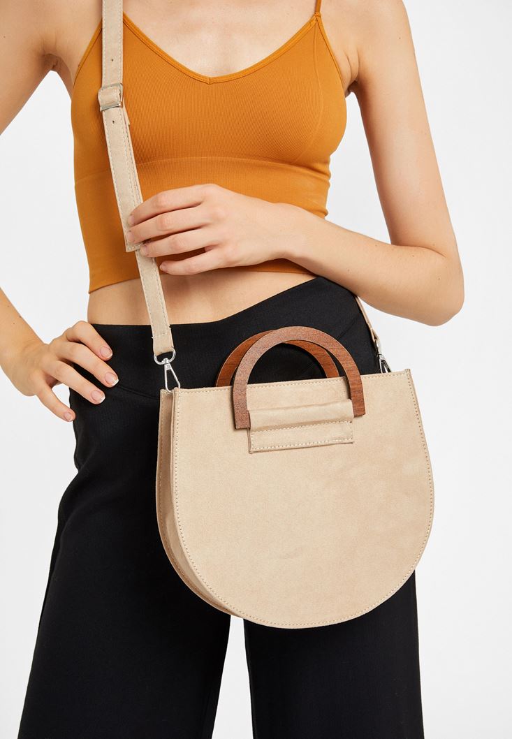 Askılı Süet Çanta modeli son dönem trendleri arasında yer alan geometrik forma sahip çantalar arasında kullanım konforu ve zarafeti ile dikkatinizi çekmeyi başaracak parçalardan birisi. Kadın çanta modelinin yarım oval formundaki tasarımı ve kutu görünümü bu parçanın hem klasik hem de casual kombinlerle birlikte kullanılmasına olanak sağlıyor. Süet çanta tasarımı, hem askılı hem de saplı kullanıma uygun olarak tasarlandığı için bu aksesuarı tam olarak ihtiyacınıza uygun şekilde tercih edebilirsiniz. Süet dokunun yumuşaklığını ahşap görünümlü saplarla tamamlayan çanta modelinin tasarım bütünlüğü bu sayede korunmuş oluyor. OXXO’nun enerjisi yüksek, ruhu özgür kadınlardan aldığı ilhamı yansıtan askılı süet çanta tasarımını keyifle kullanacaksınız.
