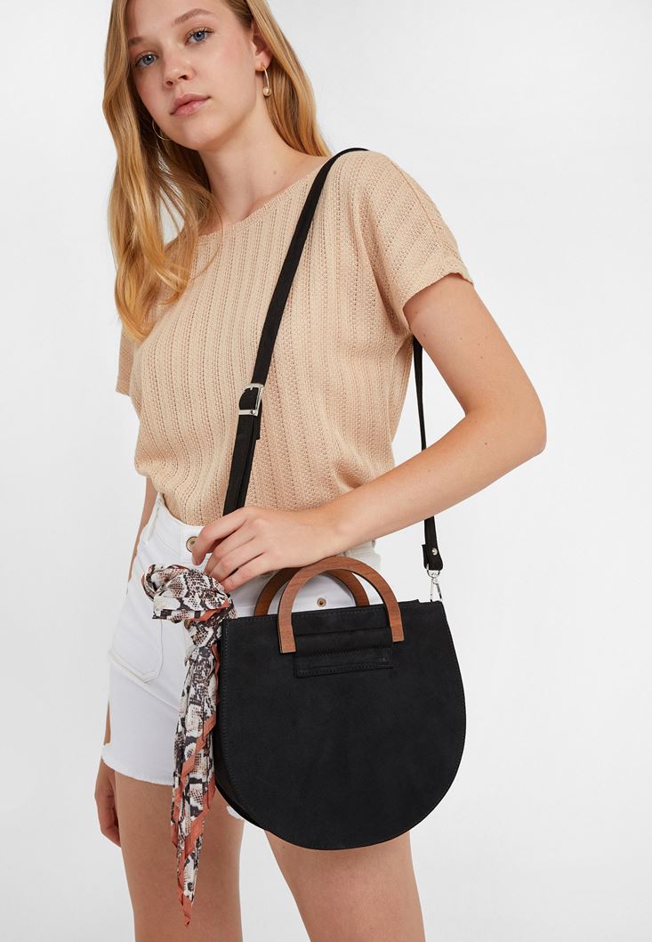 Askılı Süet Çanta modeli son dönem trendleri arasında yer alan geometrik forma sahip çantalar arasında kullanım konforu ve zarafeti ile dikkatinizi çekmeyi başaracak parçalardan birisi. Kadın çanta modelinin yarım oval formundaki tasarımı ve kutu görünümü bu parçanın hem klasik hem de casual kombinlerle birlikte kullanılmasına olanak sağlıyor. Süet çanta tasarımı, hem askılı hem de saplı kullanıma uygun olarak tasarlandığı için bu aksesuarı tam olarak ihtiyacınıza uygun şekilde tercih edebilirsiniz. Süet dokunun yumuşaklığını ahşap görünümlü saplarla tamamlayan çanta modelinin tasarım bütünlüğü bu sayede korunmuş oluyor. OXXO’nun enerjisi yüksek, ruhu özgür kadınlardan aldığı ilhamı yansıtan askılı süet çanta tasarımını keyifle kullanacaksınız.