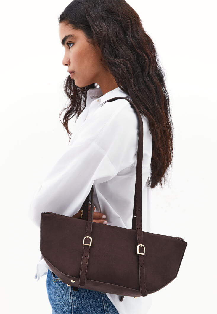 • Bayan Kahverengi Askılı Süet Omuz Çantası