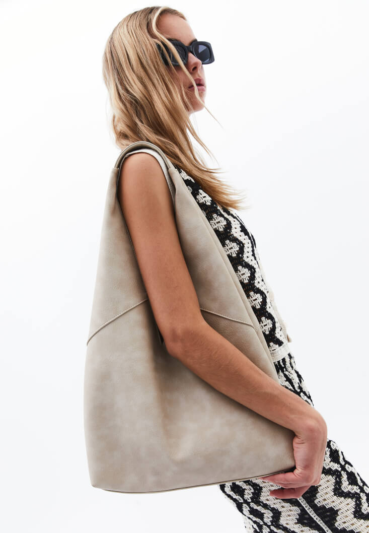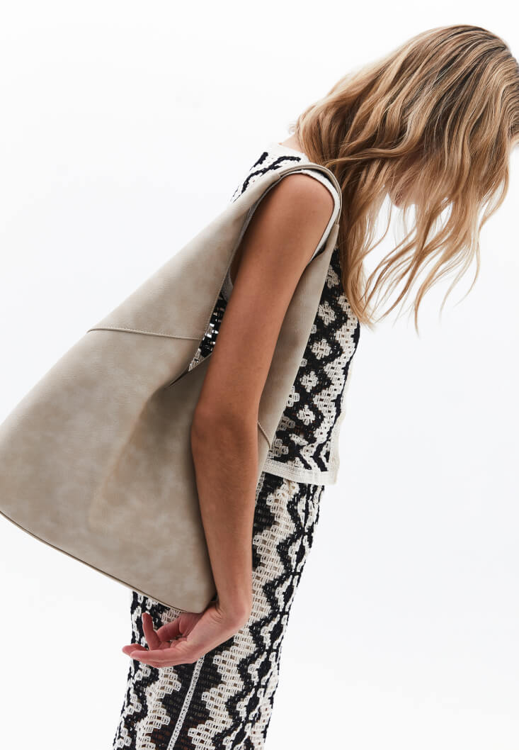 • Bayan Bej Askılı Tote Çanta
