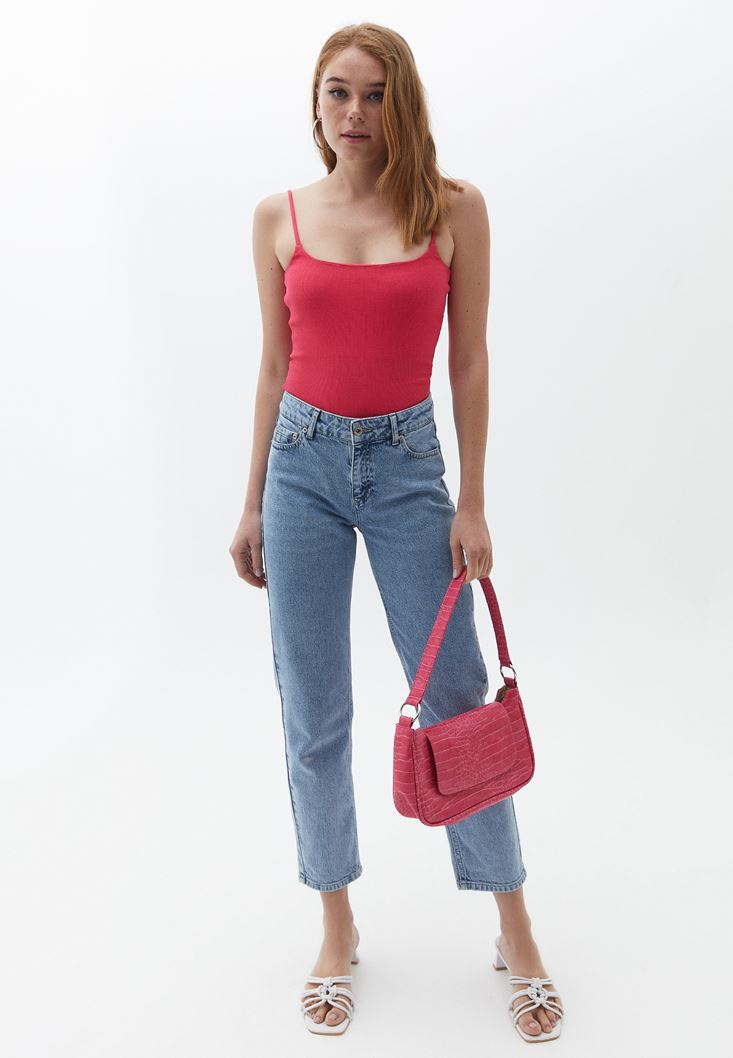 Askılı Triko Atlet ve Mom Pantolon Kombini