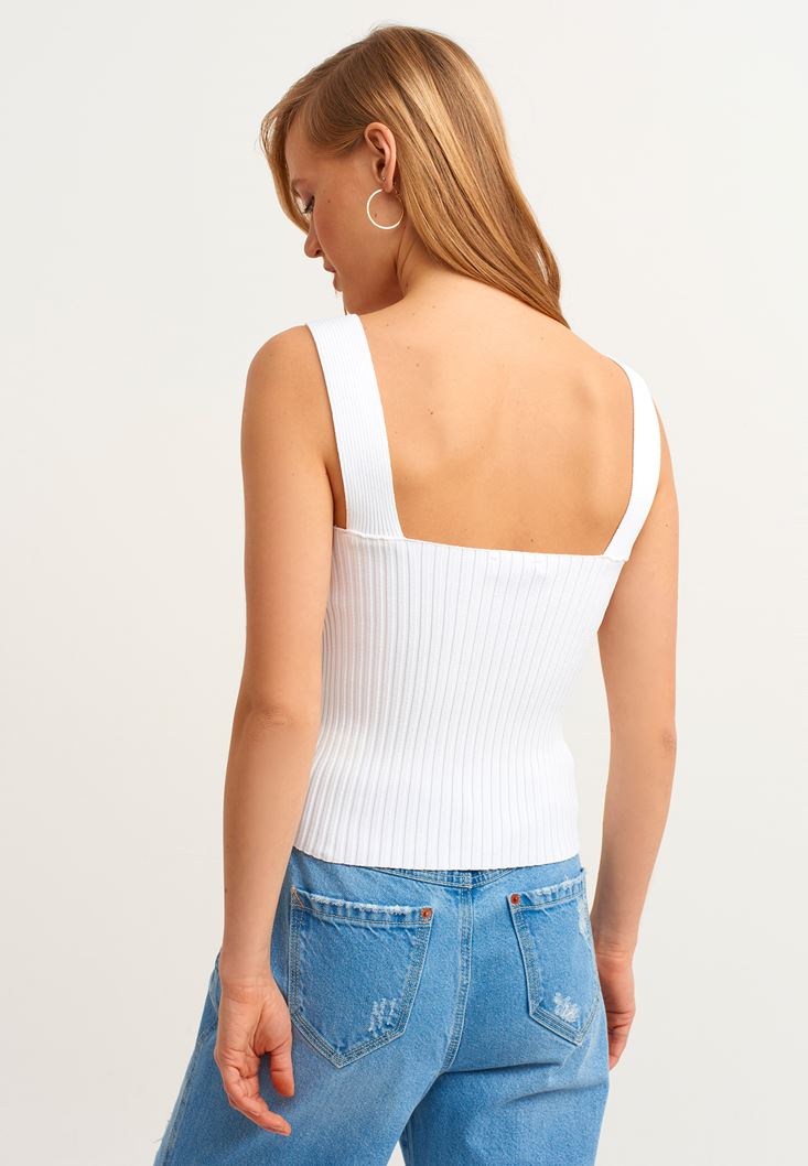 Vazgeçilmez trikolar yaz mevsiminde de bizimle ve bu yakın dostluk için en iyi parçalardan biri askılı triko top! Hem ofis günlerinde hem de günlük hayatında dilediğin kombini onunla tamamla… :)