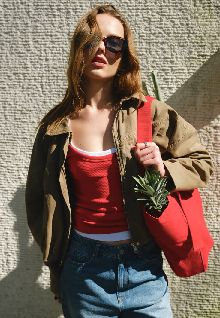 • Bayan Kırmızı Askılı U Yaka Atlet