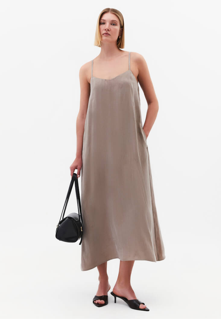 Kum Beji Askılı Uzun Elbise (TENCEL™ )