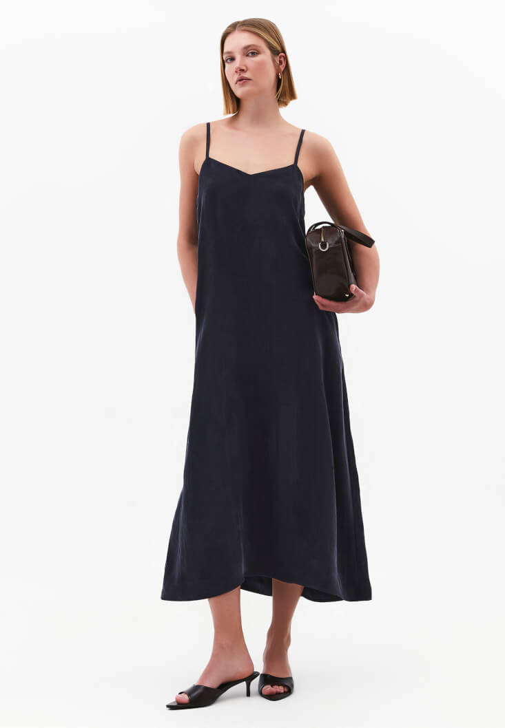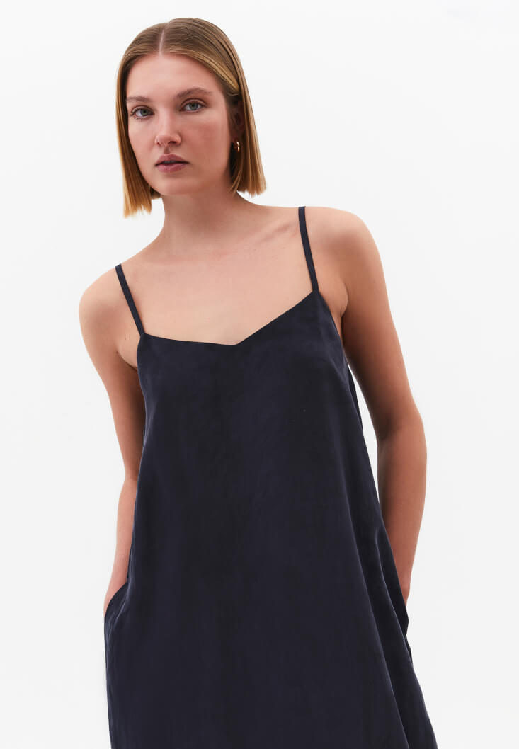 Lacivert Askılı Uzun Elbise (TENCEL™ )