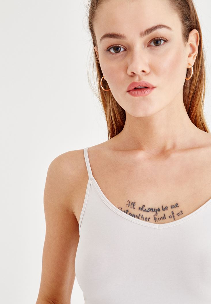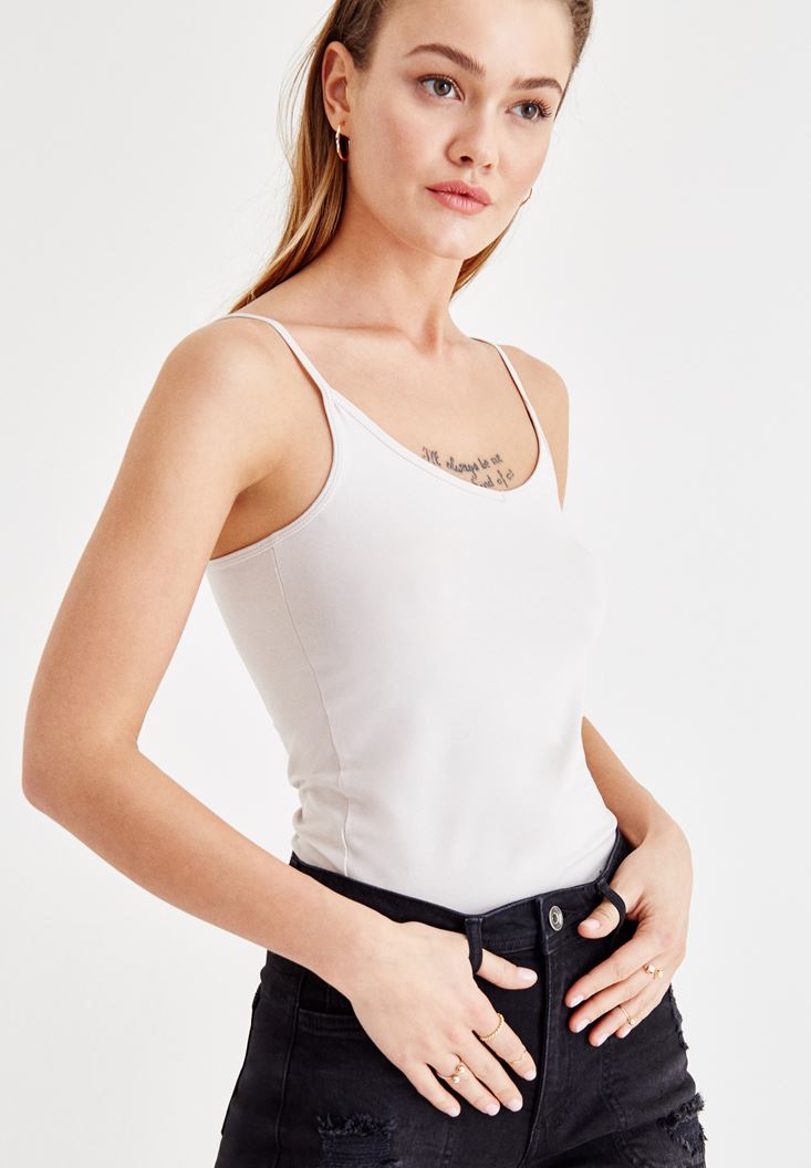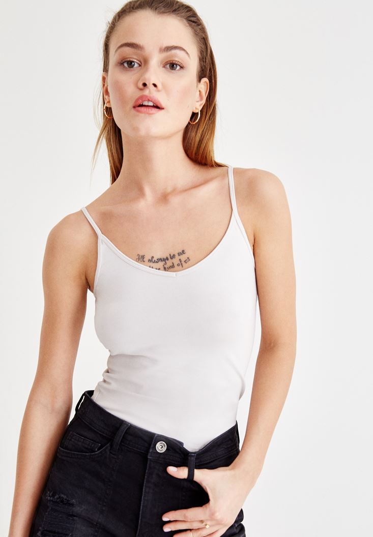 • Bayan Gri Askılı V Yaka Atlet