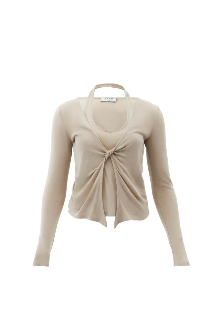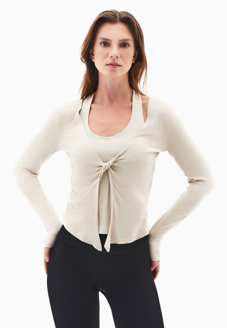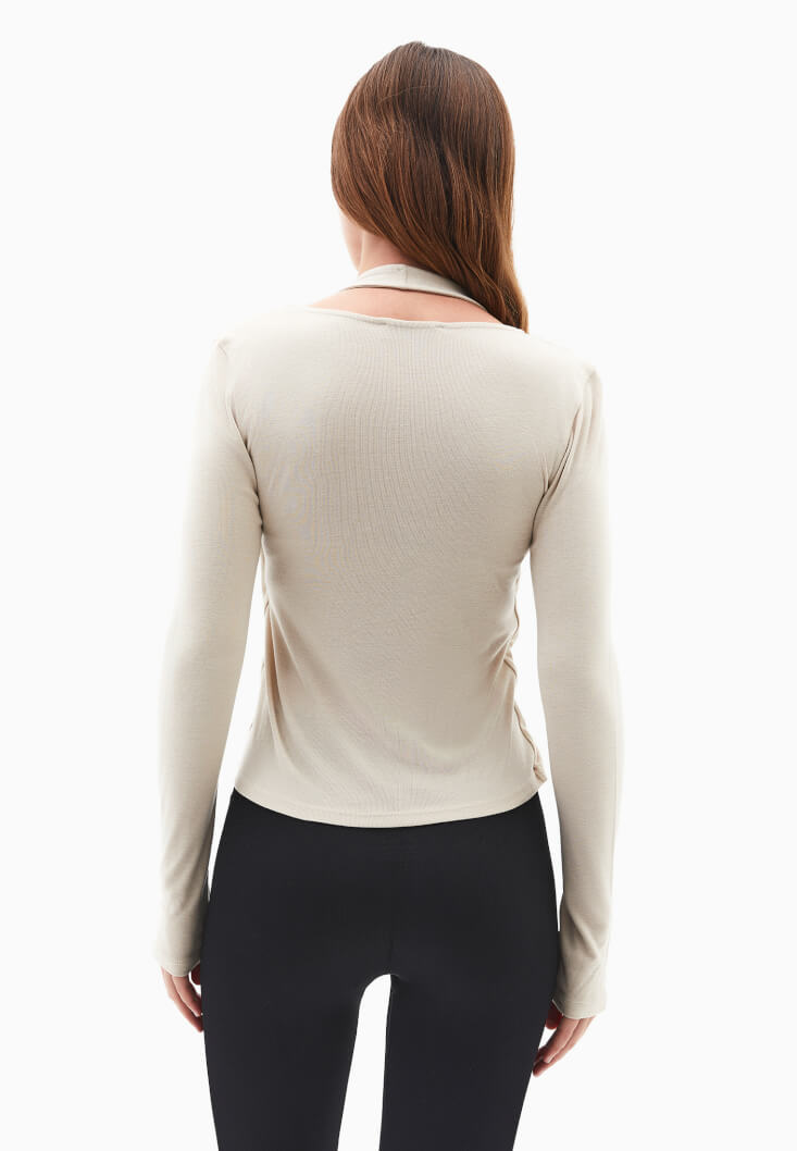 • Bayan Bej Atlet Detaylı Burgulu Tişört