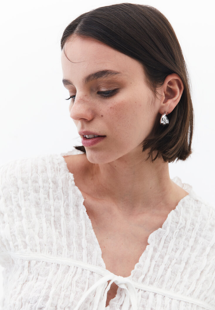 Bağcık Detaylı Bluz ve Wide-Leg Pantolon Kombini