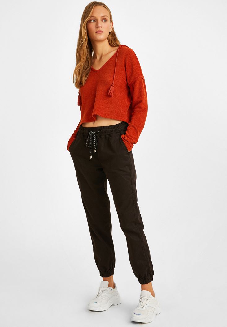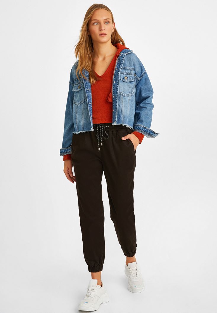 Bağcık Detaylı Jogger Pantolon modeli; narin dokusu, rahat kalıbı ve paçalarındaki lastik detayı ile beğeninize sunuluyor. Çok sevilen jogger kalıbında gördüğünüz kadın pantolon modeli, belindeki bağcık detayı ve rahat kesimiyle gün içerisinde eşsiz bir rahatlık sunma garantisi veriyor. kadın jogger pantolon modeli, sweat modelleri ve triko modelleri ile kombin yaptığınızda yakalayacağınız iddialı tarz sayesinde enerjinizi üst seviyelere taşıyabilirsiniz. kadın jogger pantolon modeli ile stilinizi daha da ön plana çıkarmak için, beyaz sneaker ayakkabı modellerini gönül rahatlığıyla kombinleyebilirsiniz. Oxxo’nun her sezon çok sevilen pantolon modelleri arasında yer alan kadın jogger pantolon modelleri ile tarzınızın keyfini sonuna kadar çıkarabilirsiniz.