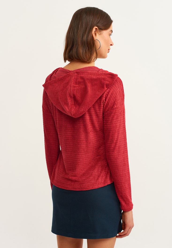 • Bayan Bordo Bağcık Detaylı Kapüşonlu Bluz