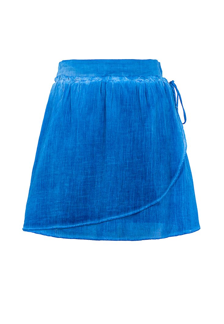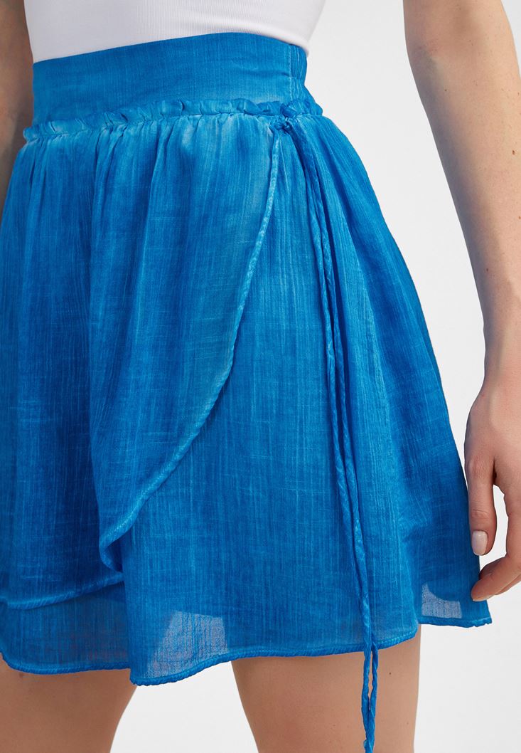 • Bayan Mavi Bağcık Detaylı Mini Etek
