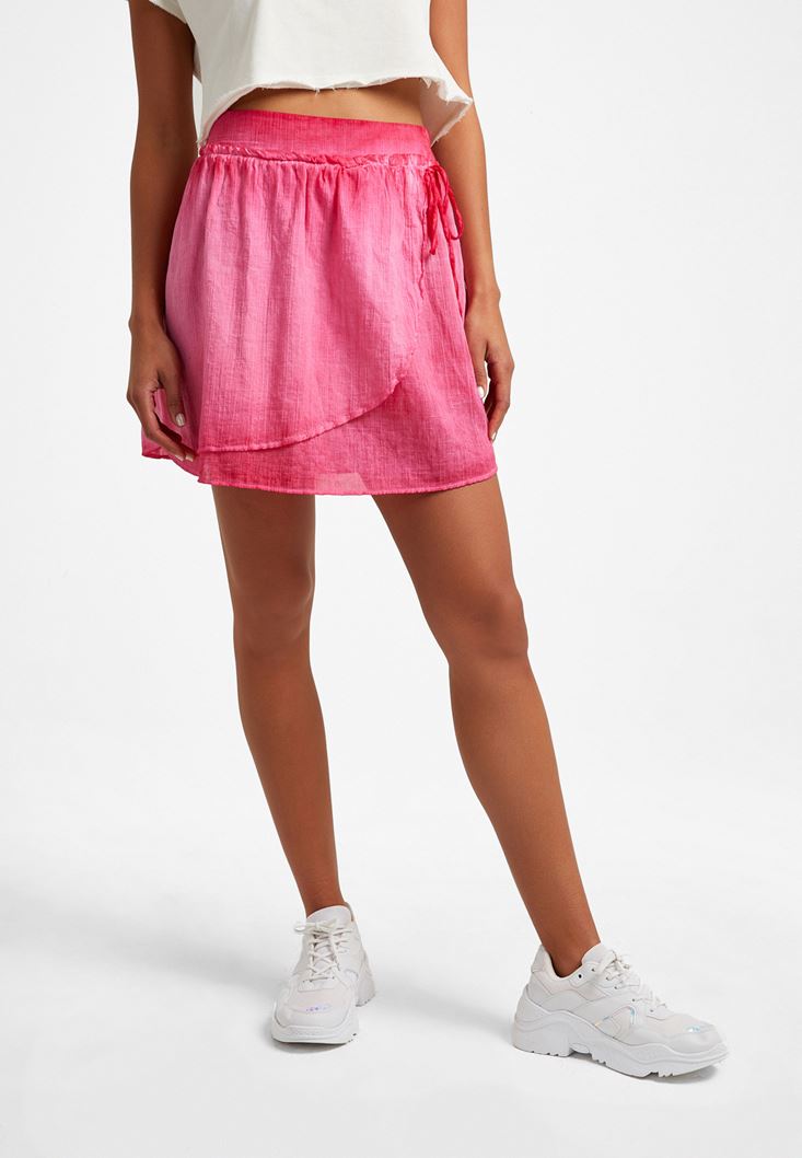 • Bayan Pembe Bağcık Detaylı Mini Etek