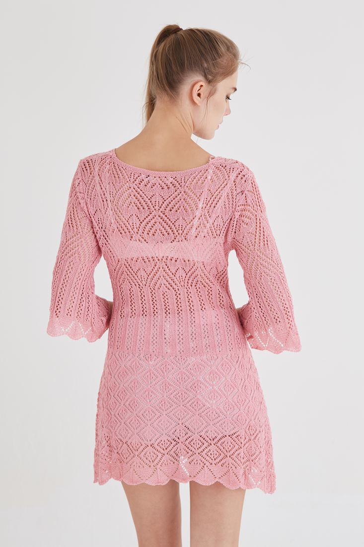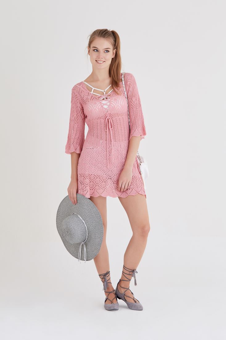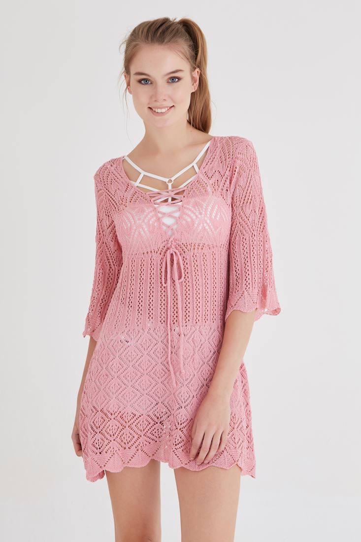 • Bayan Pembe Bağcık Detaylı Örme Elbise