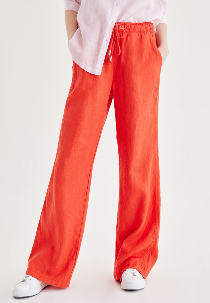 Sokak stilinde önemli bir yeri olan bol paça pantolonlar rahat ve feminen havasi ile sezonun favorilerinden biri. % 100 keten kumas özelligi ile vücudun hava almasini saglayan pantolon, bir çok kumas türüne göre daha dayanikli olmasi sebebi ile yillarca kullanabileceginiz pantolonlar arasinda yer aliyor. Bel bölgesi lastikli ve bagcik detayli pantolonu babet, spor ayakkabi ve sandalet gibi ayakkabi modelleri ile rahatça giyebilirsiniz. Bacak boyunu uzun gösteren pantolon her türlü üst giyim ürünü ile kolayca uyum saglayarak eforsuz bir siklik olusturmanizi saglar. Crop top parçalar ile de harika bir uyum yakalayan bagcik detayli keten pantolon rahatligina ve sikligina düskün OXXO kadinlarinin vazgeçilmez pantolon modellerinden biri olacak!