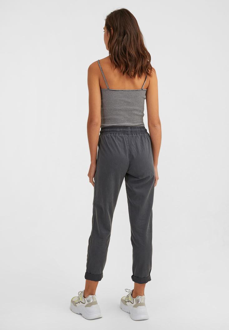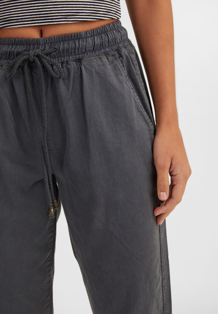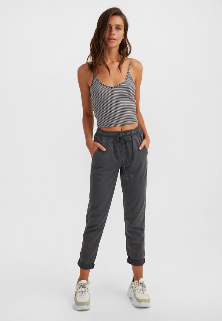 Gri Bağcıklı Cep Detaylı Jogger
