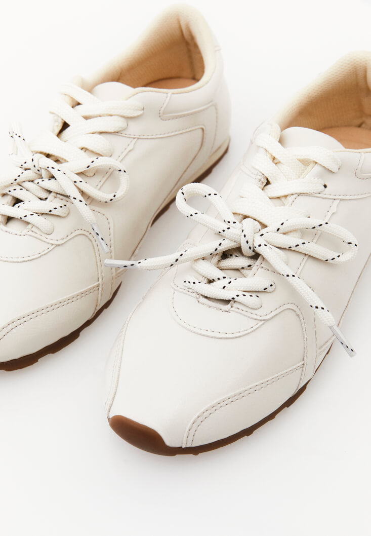 Krem Bağcıklı Spor Ayakkabı