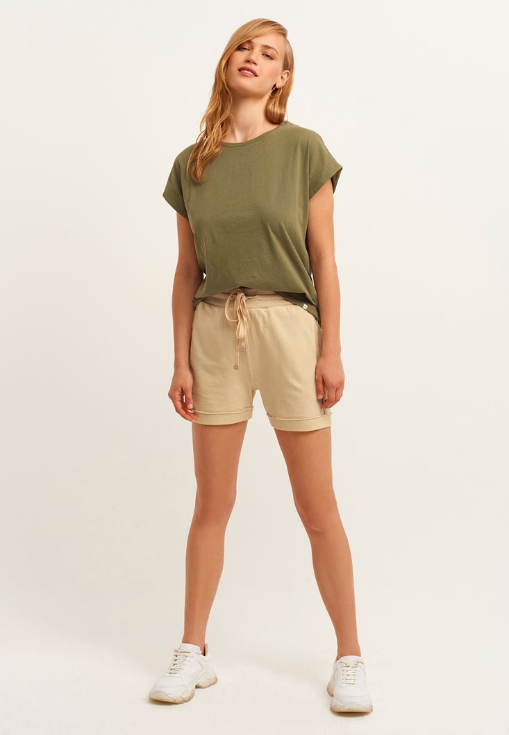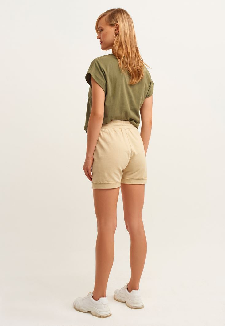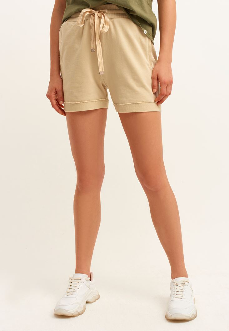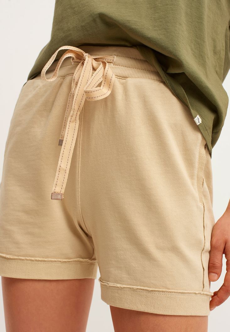 Bej Bağcıklı Sweat Mini Şort
