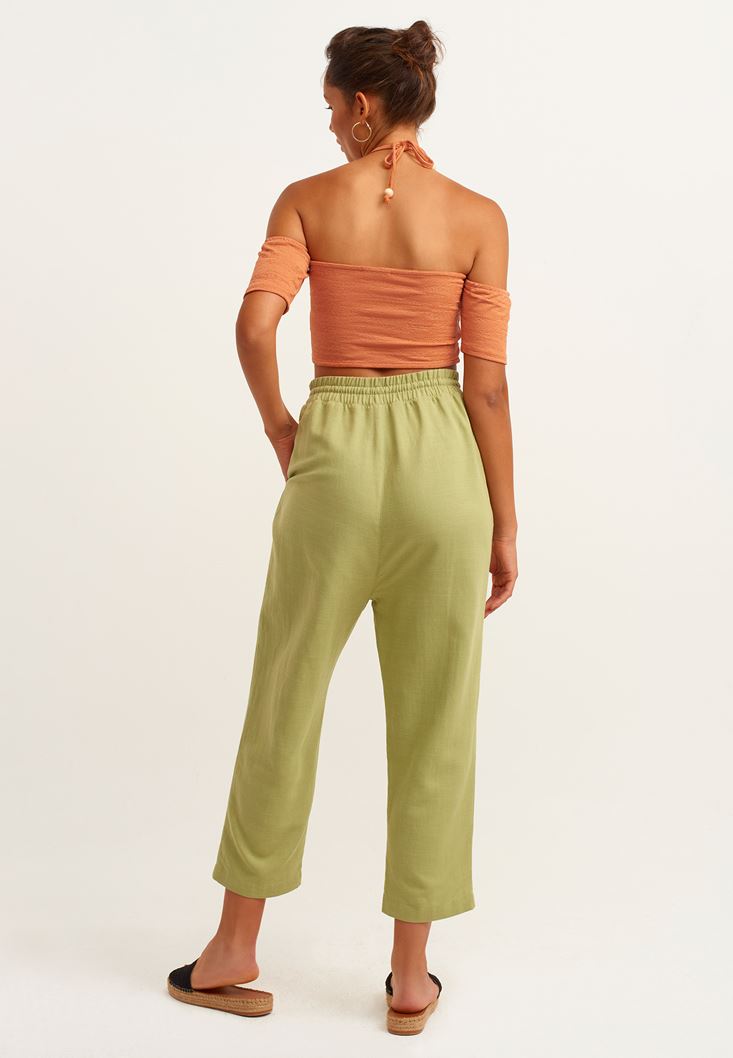 • Bayan Yeşil Baggy-Fit Keten Pantolon