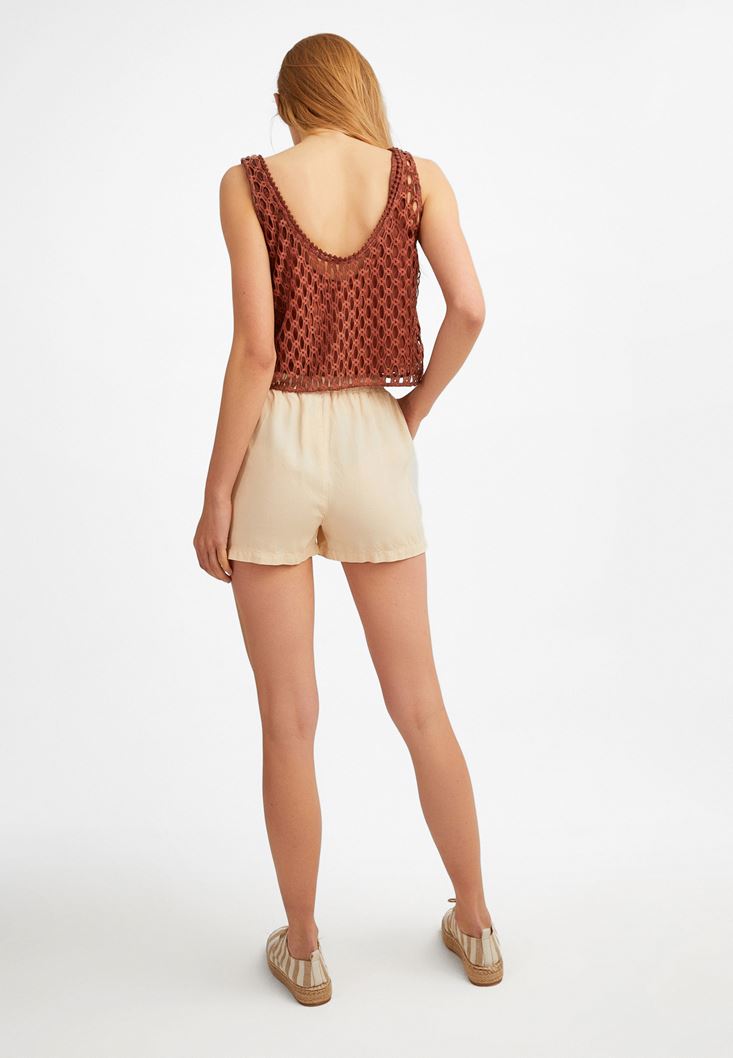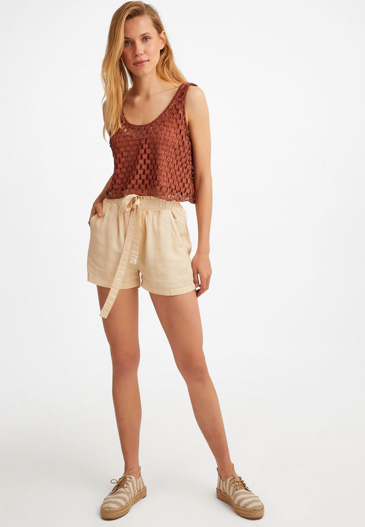 Krem Bağlama Detaylı Beli Lastikli Şort ( TENCEL™ )