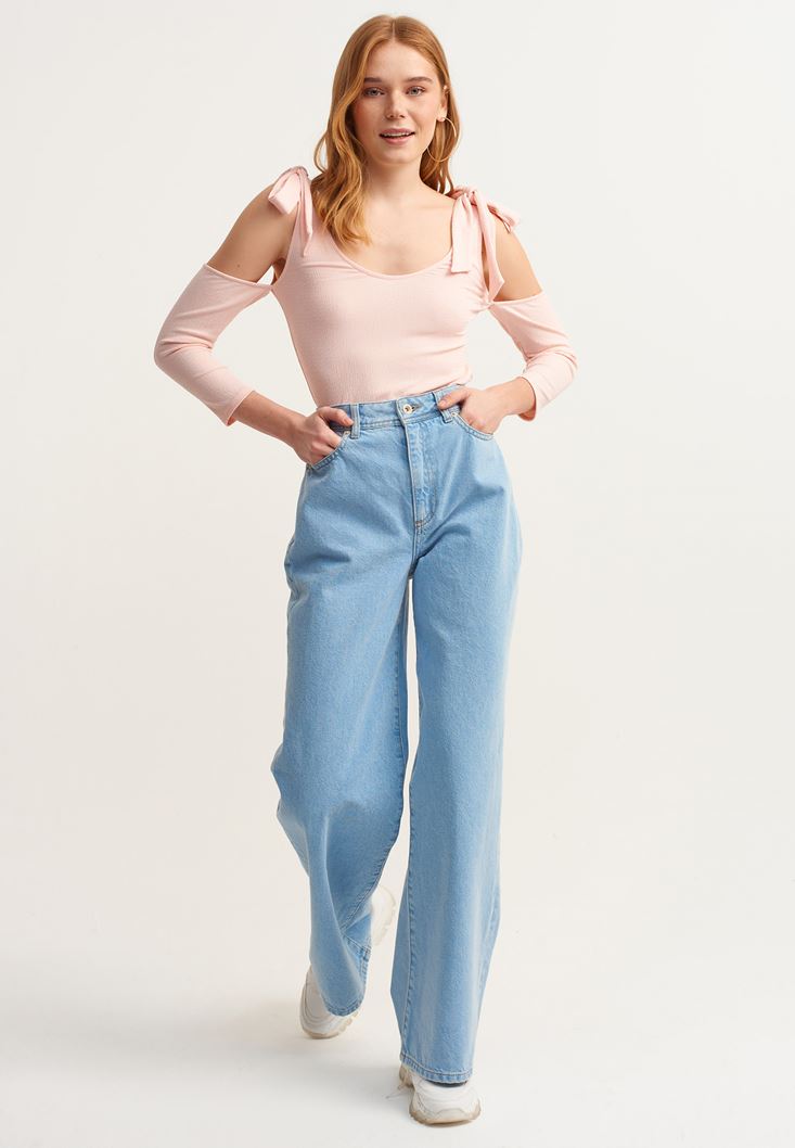 Bağlama Detaylı Bluz ve Denim Pantolon Kombini
