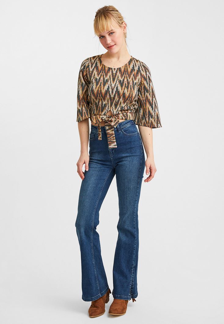 Çok Renkli Bağlama Detaylı Bluz