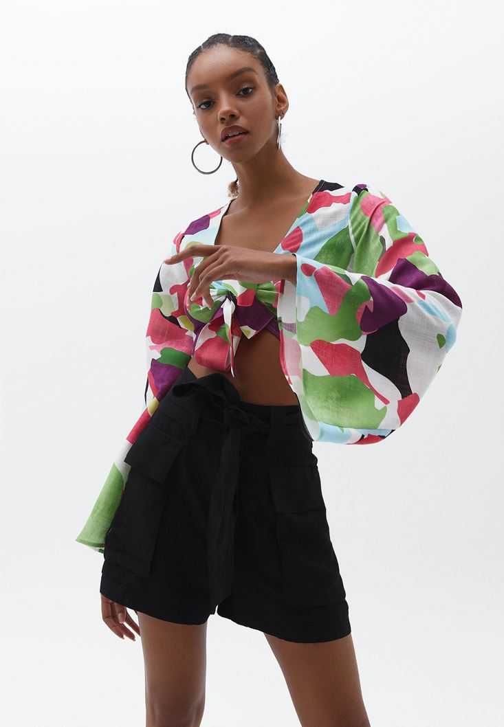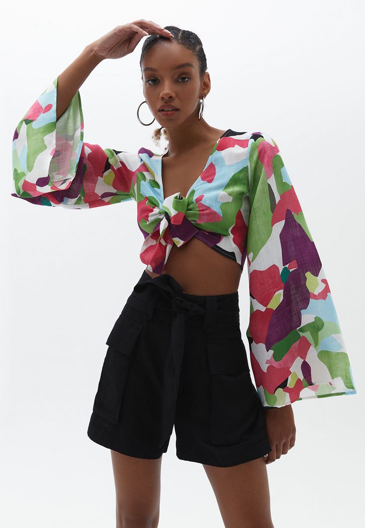 Çok Renkli Bağlama Detaylı Bluz