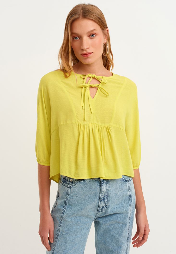 • Bayan Yeşil Bağlama Detaylı Bluz