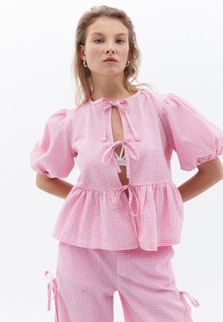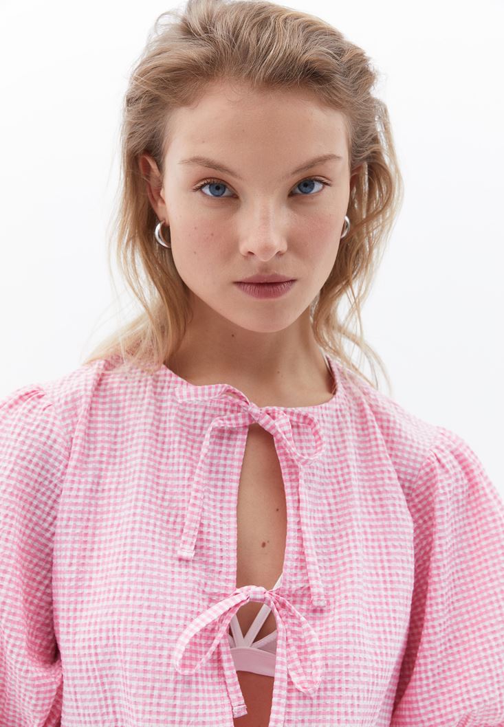 Pembe Bağlama Detaylı Bluz