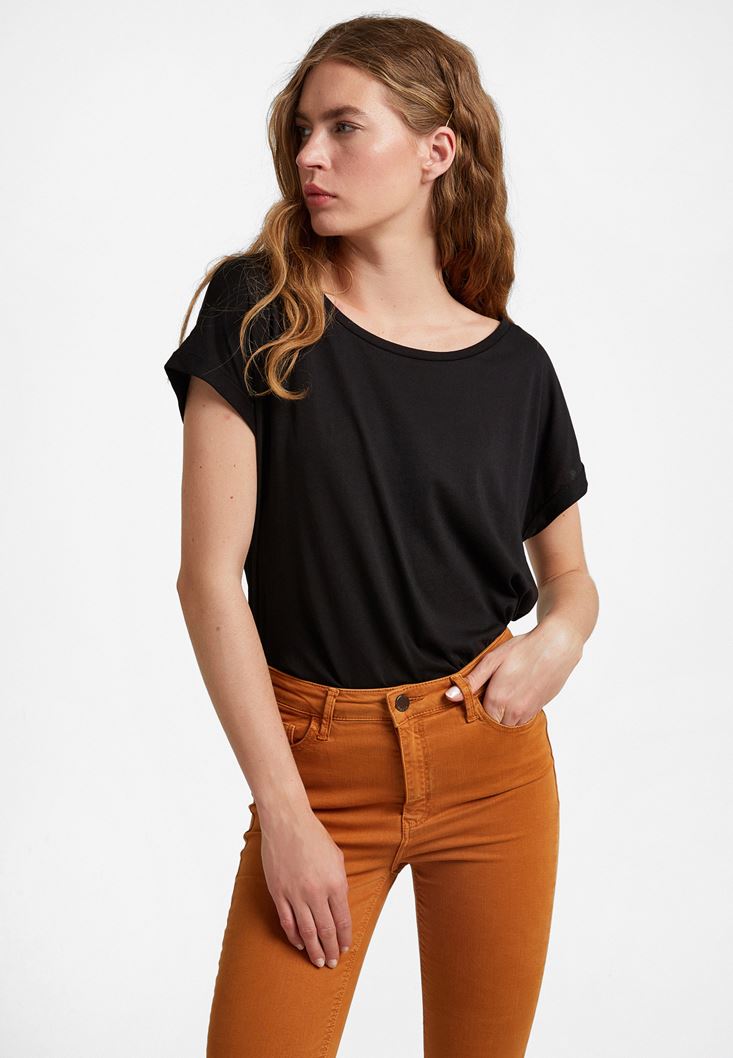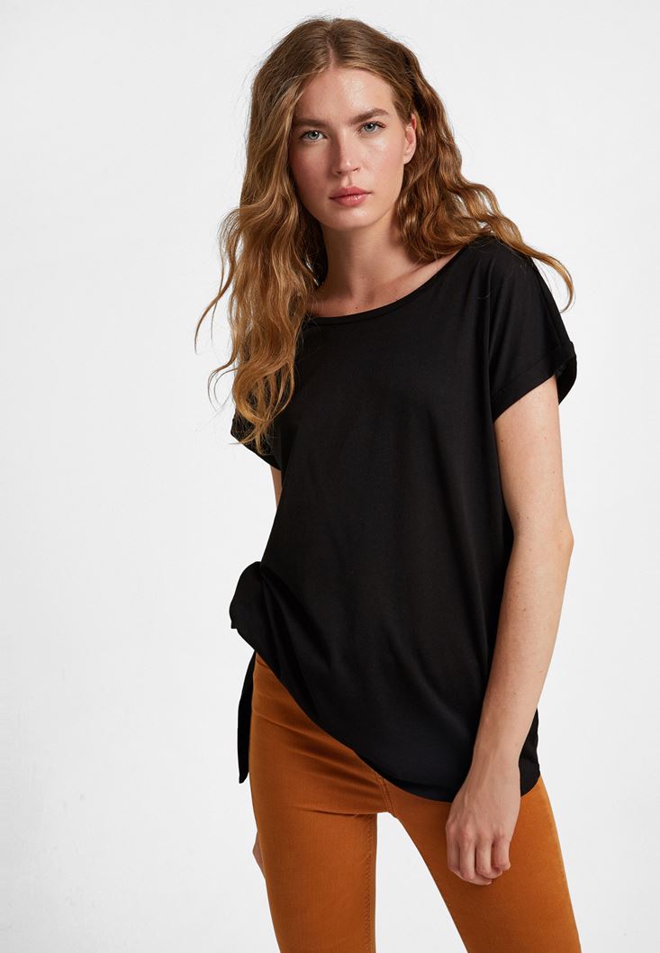 Bağlama Detaylı Bot Yaka Tişört modeli, modal ve pamuk karışımlı yumuşacık dokusu ile Oxxo'da sizlere sunuluyor. kadın tişört modeli, katlamalı kısa kol ayrıntısının yanı sıra yan kısmındaki bağlama detayıyla da ön plana çıkıyor. Şık tişört modeli, bot yaka kesimi ve bol duruşu ile göz alıcı bir parça oluyor. Bol veya dar paçalı pantolonlarla kullanabileceğiniz kadın tişört modeli ile fark yaratan görünümlere ulaşabilirsiniz. Mini şortlarla veya eteklerle tercih ederek de uyum elde edebileceğiniz şık tişört modeliyle tarzınızı yansıtabilirsiniz. kadın tişört modeli ile oluşturacağınız benzersiz kombinleri kolyelerle ve küpelerle taçlandırabilirsiniz. Oxxo'nun yumuşacık dokularla ve farklı ayrıntılarla sizlere sunduğu kadın tişört modelleri ile stilinizi şekillendirebilirsiniz.