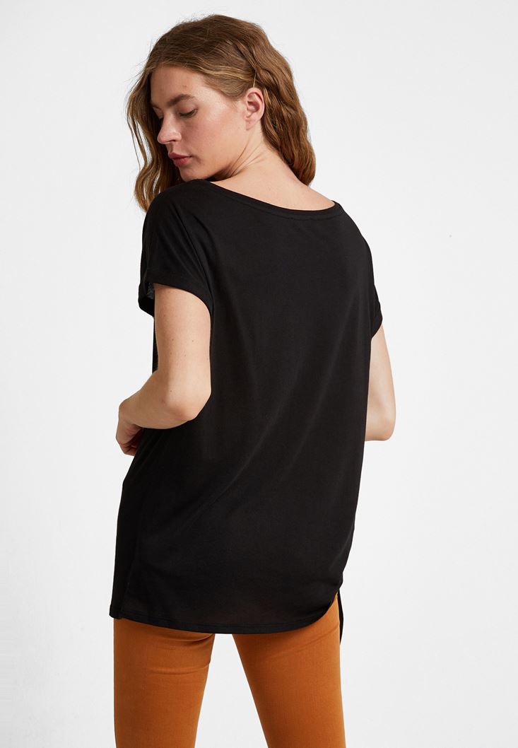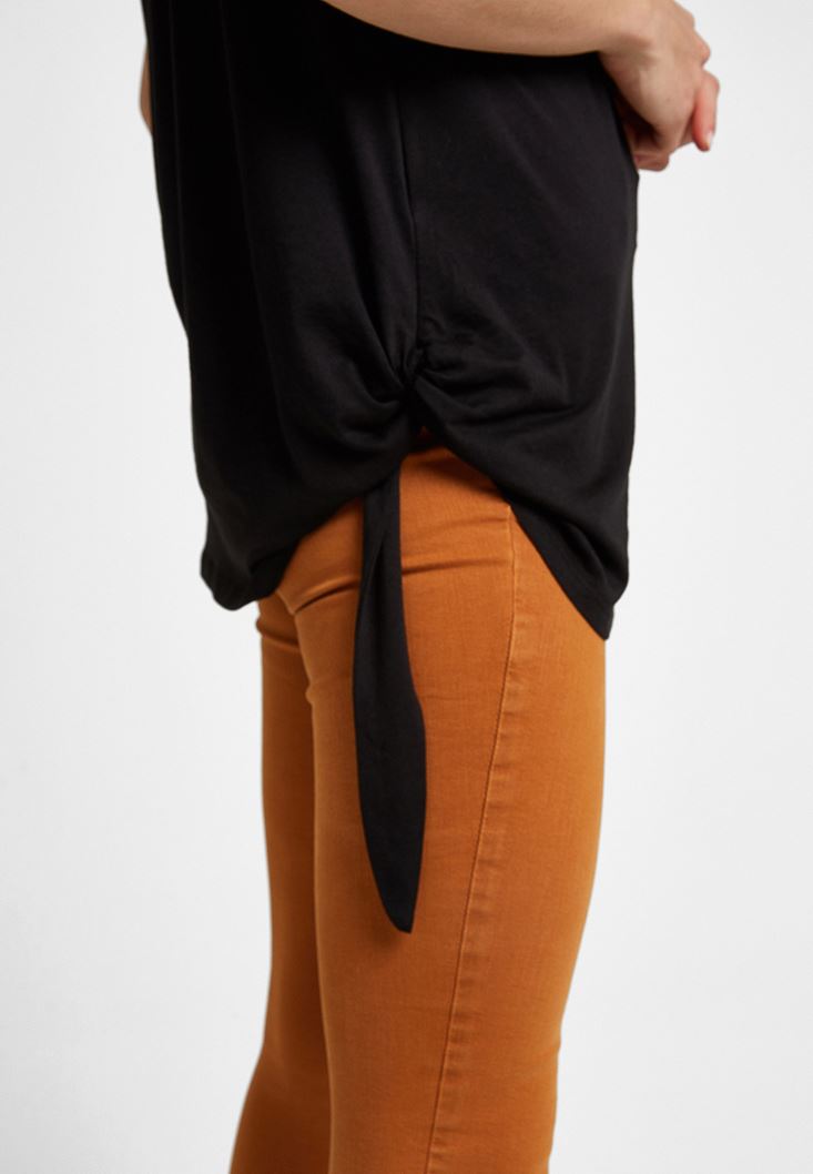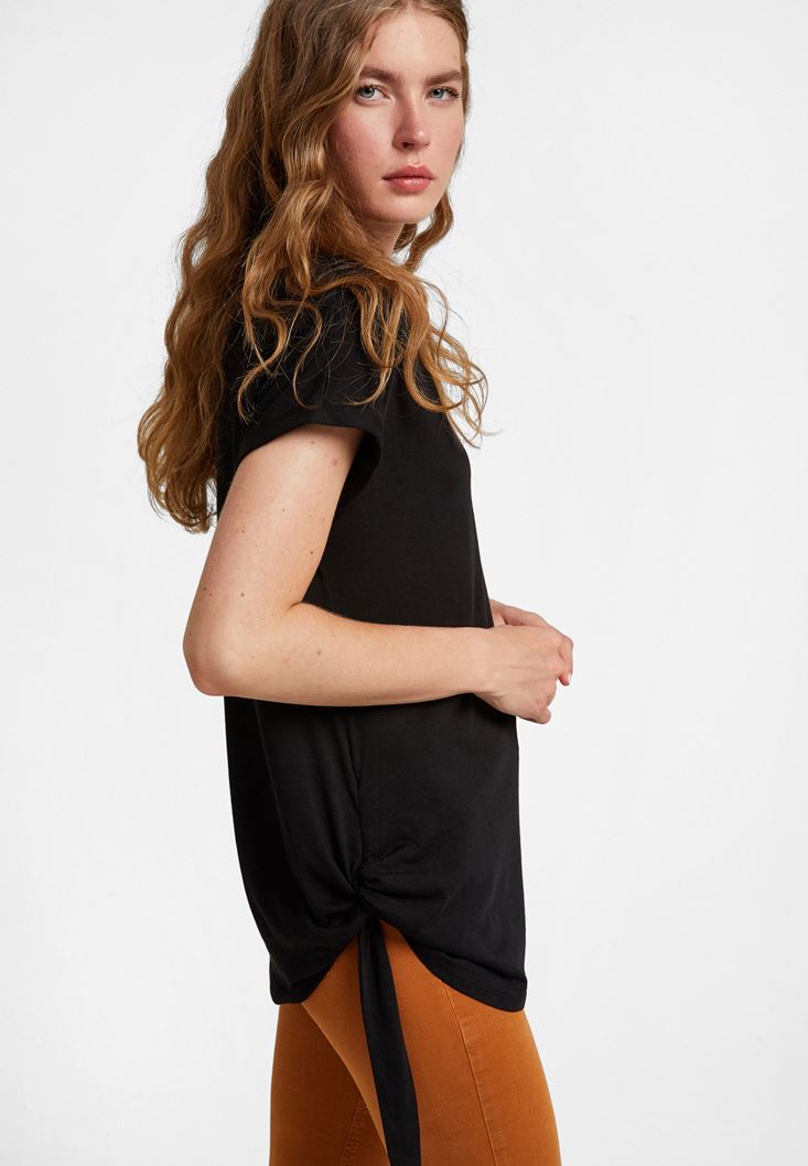 • Bayan Siyah Bağlama Detaylı Bot Yaka Tişört