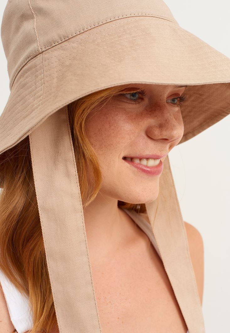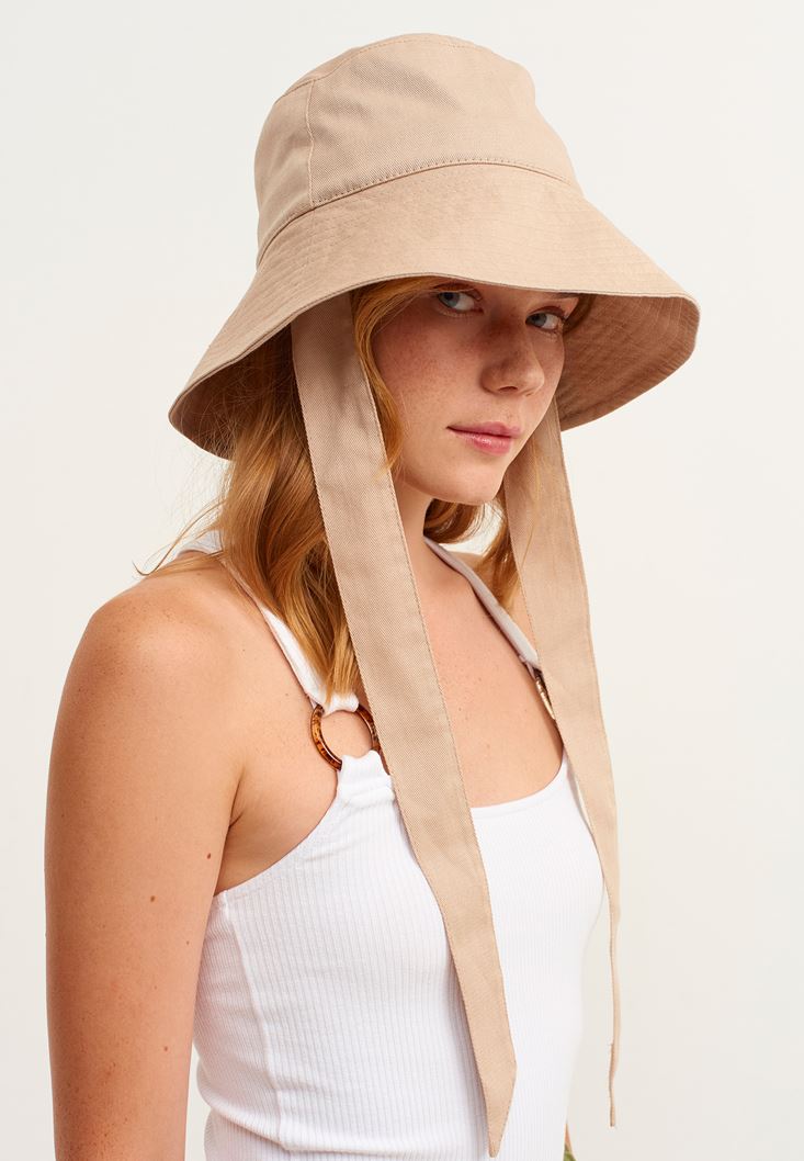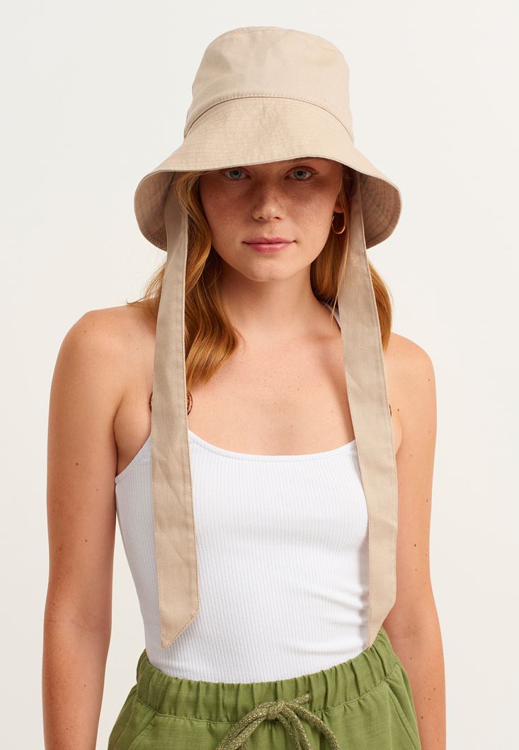 Krem Bağlama Detaylı Bucket Şapka