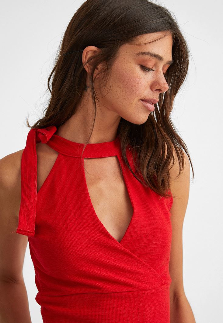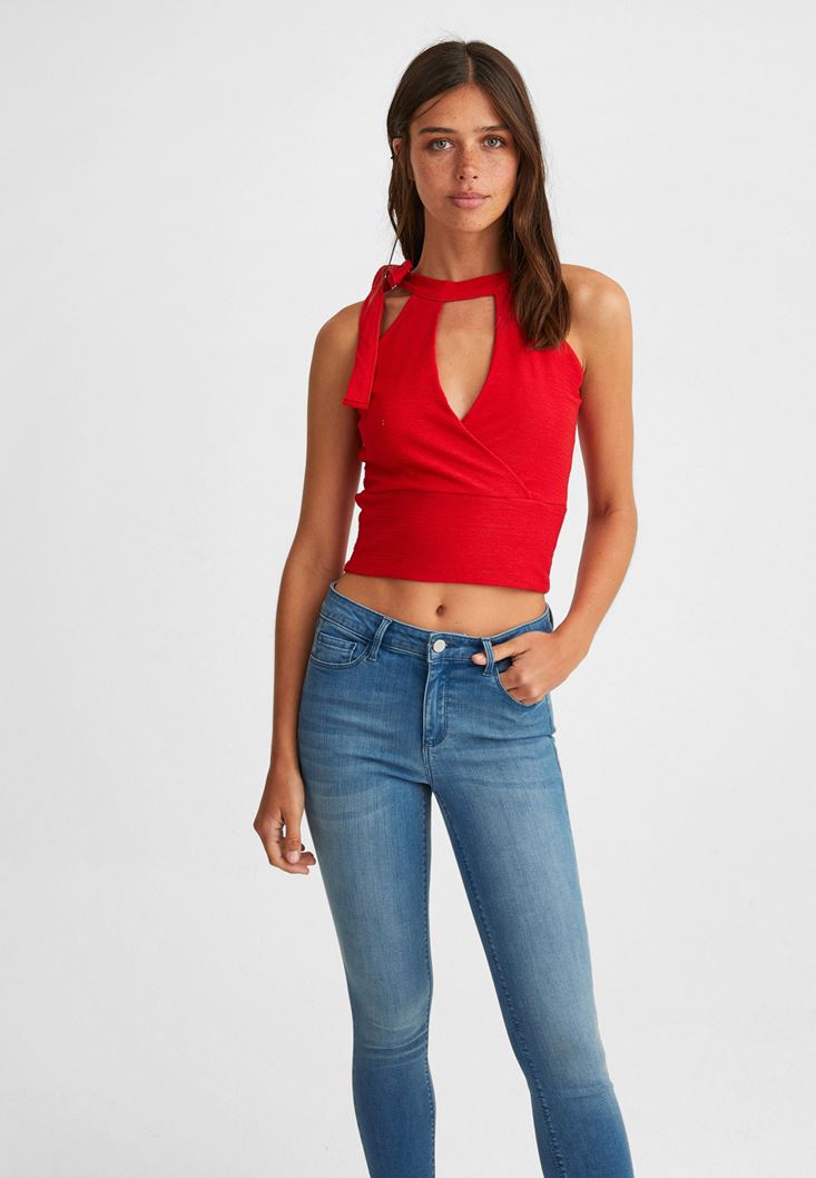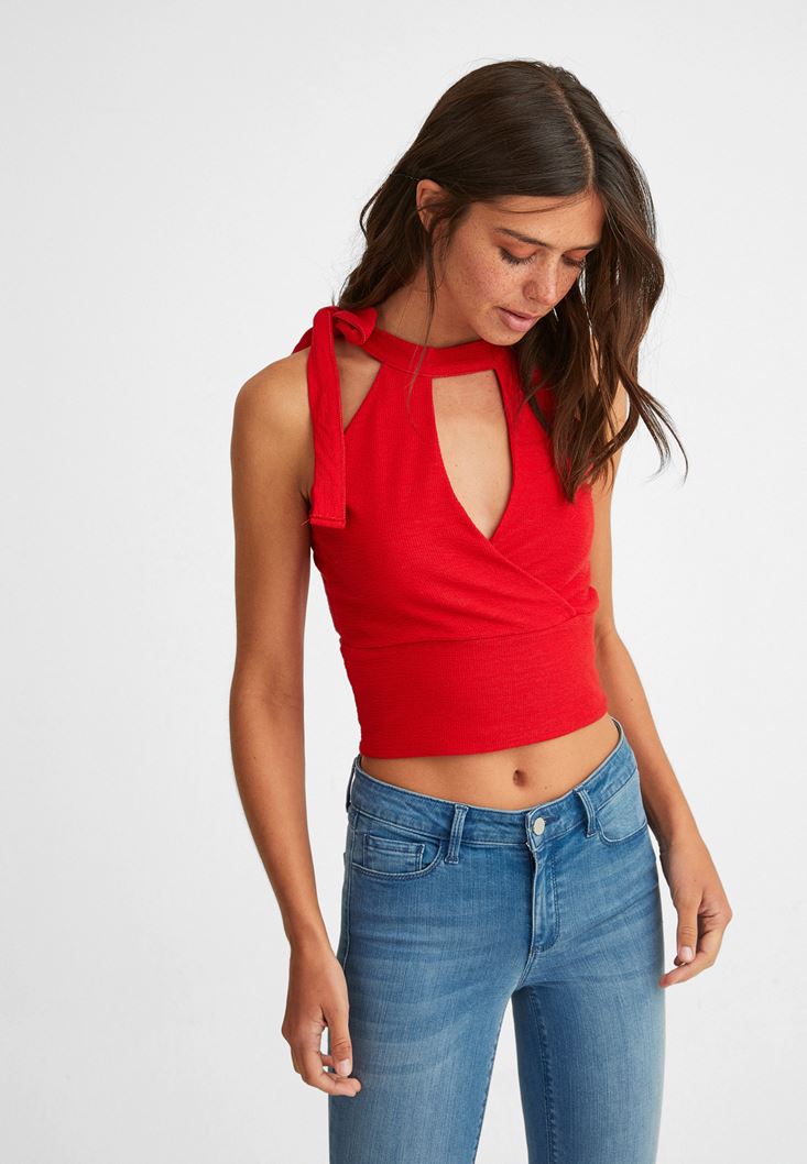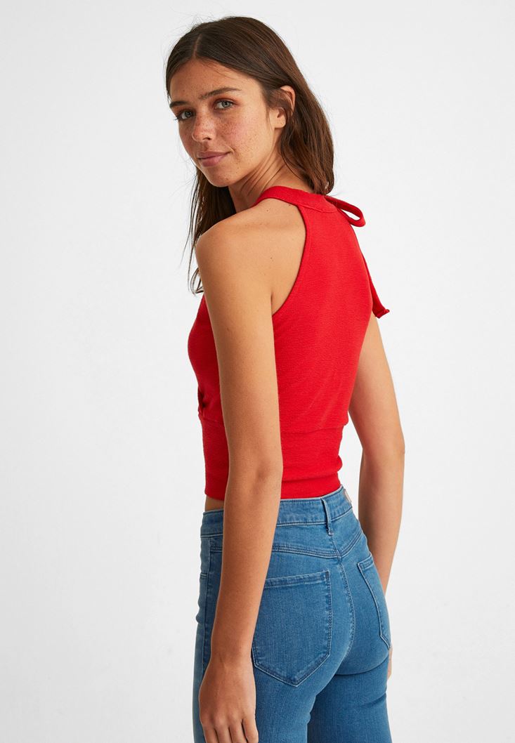 Kırmızı Bağlama Detaylı Crop Atlet