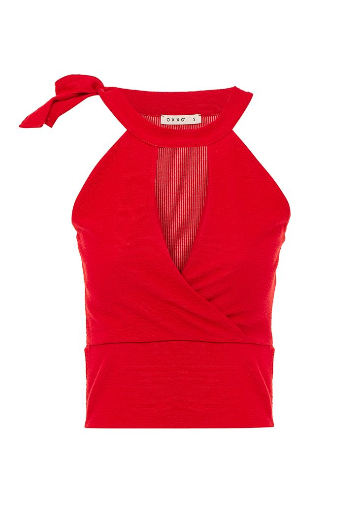 • Bayan Kırmızı Bağlama Detaylı Crop Atlet