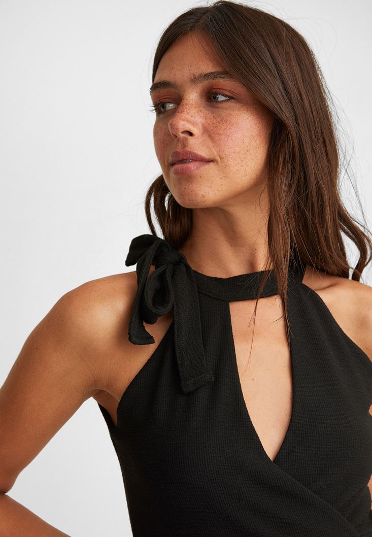 Bağlama Detaylı Crop Atlet modeli güçlü duruşu ve dikkat çeken boyun dekoltesi ile şıklığınızı ön plana çıkaracak crop atlet modellerinden birisi. Dokusu,duruşu ve tasarımı ile kendisine has tarzını yakalayan bağlamalı bluz modeli çok severek kombinleyebileceğiniz şık atlet modelleri arasında. Tasarımda kullanılan bağlama detayı ve boyun dekoltesi ile şık bir görünüm sunan bağlamalı crop atlet modeli polyester ve viskon içeriğinden dolayı yumuşak ve teni rahatsız etmeyen bir dokuya sahip. Yazın çok severek tercih edeceğiniz yazlık atlet modelleri arasında.