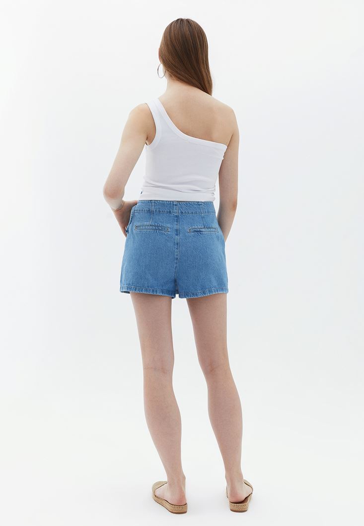 • Bayan Mavi Bağlama Detaylı Denim Şort Etek